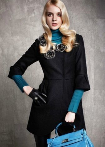 Since the coat does not cover the neck, this function is shifted to other items of clothing. For example, turtleneck or golf. Such clothes will warm, provide a cozy stay on the street and allow you to place the necessary accents.