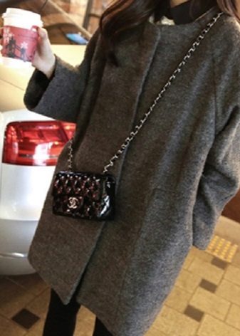 Well, what kind of female image can do without a bag? Under the coat without a collar fit any bag: business bag, elegant clutch baguette and other options. The color of the bag does not depend on the shoe or coat, in modern fashion it is permissible to choose a bag on your own.