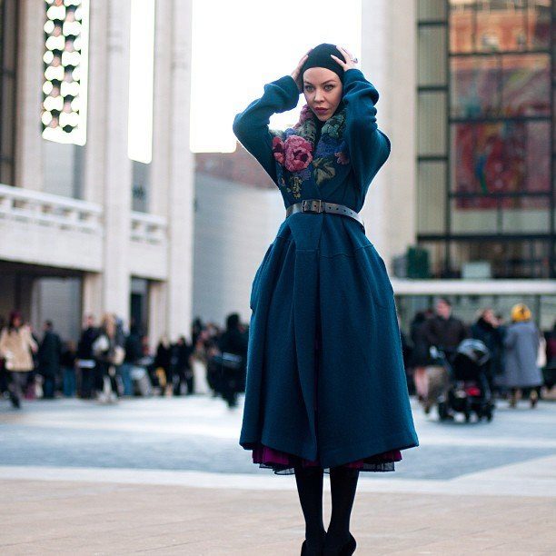 There are many ways to wear a scarf, scarf, kerchief or tippet with a coat. Unlike other models of outerwear, a coat without a collar requires to include similar elements in the images.