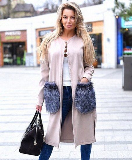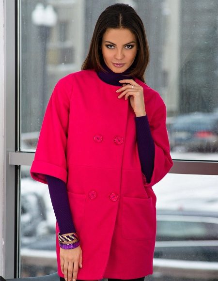 In a coat without a collar, and so all attention is paid precisely to the neck, which attracts the ultimate minimalism. But designers often try to make this element in the coat even more expressive, giving the neck round shape or regular triangle shape. A three-quarter-long sleeve helps make such a coat even more perfect.