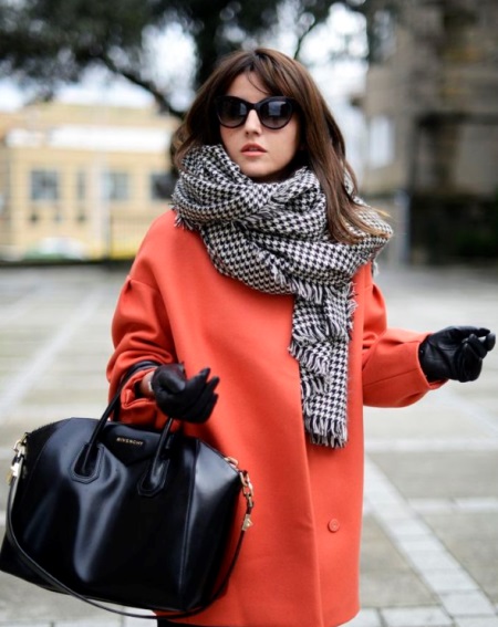 With the help of a scarf or light scarf, you can arrange the necessary accents and set the image of the character. Gloves will play a similar function. These elements can be bright, if the coat is of a calm color or, on the contrary, to bring conciseness.