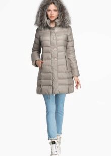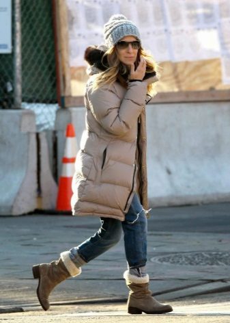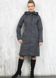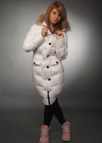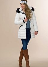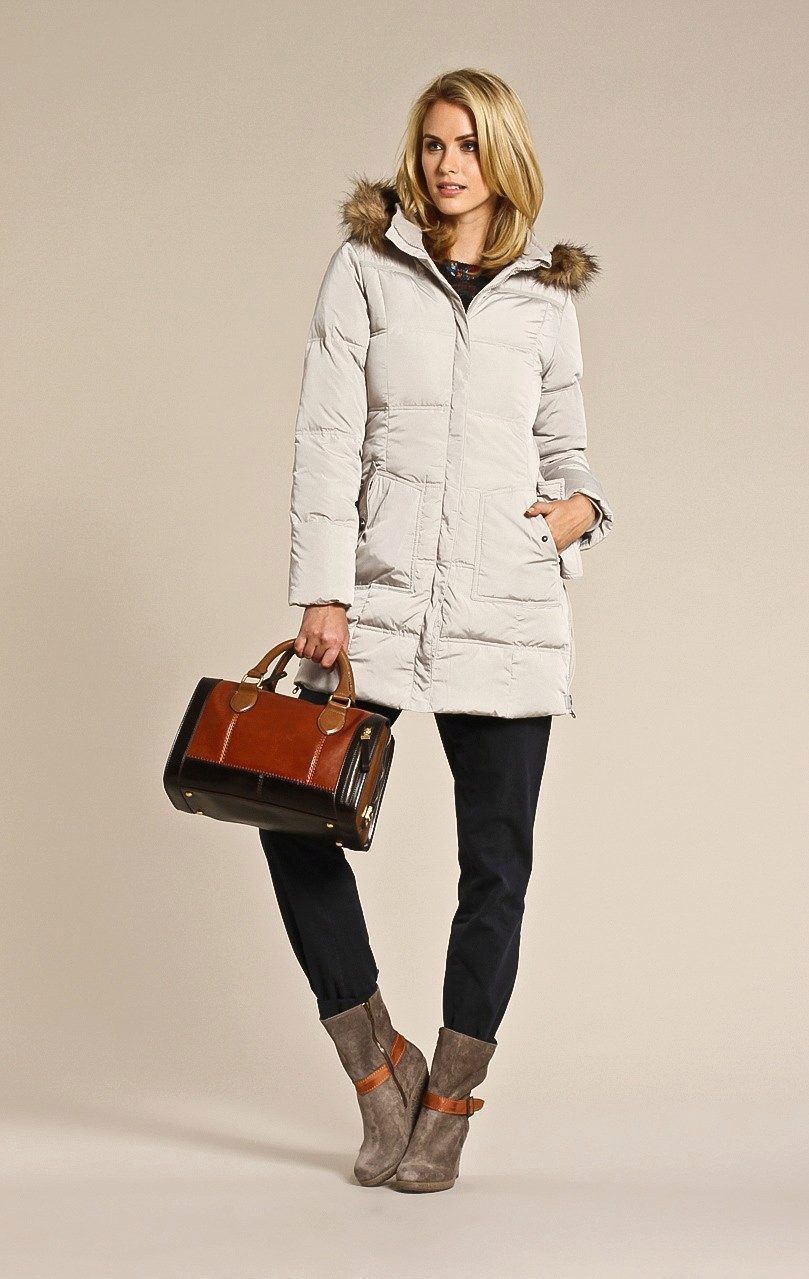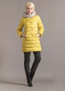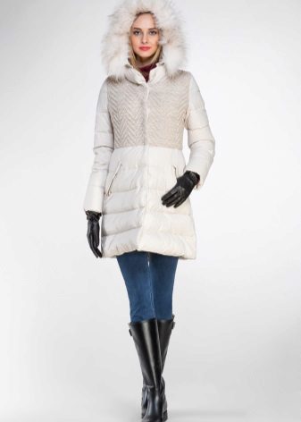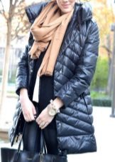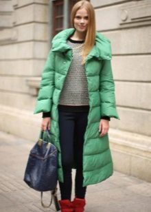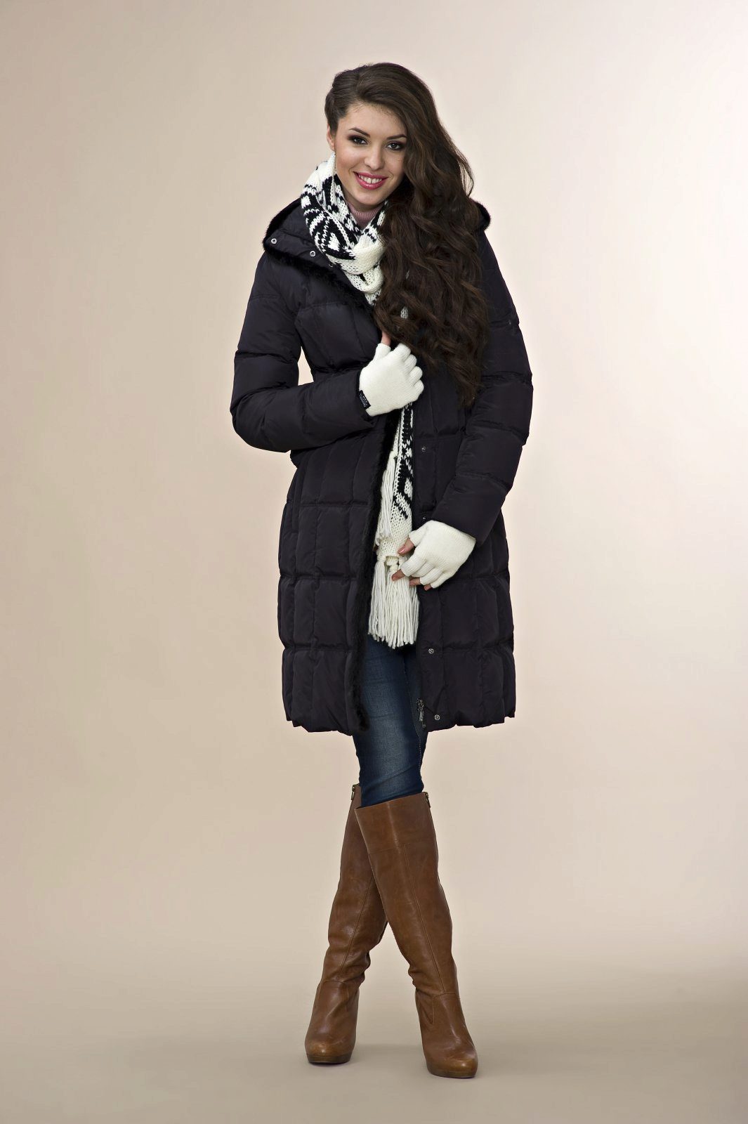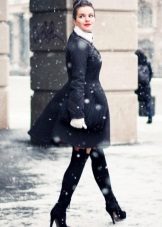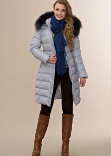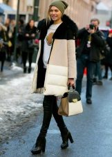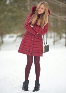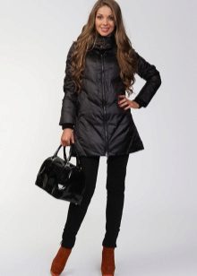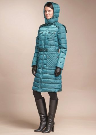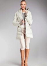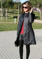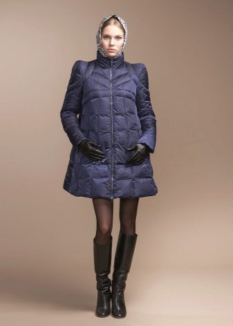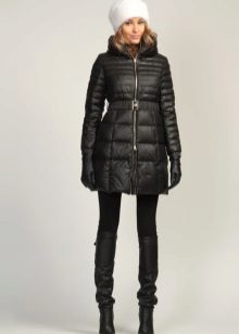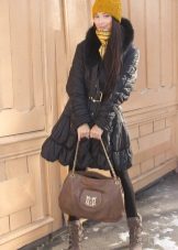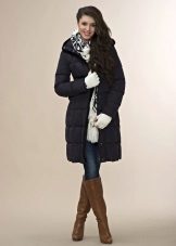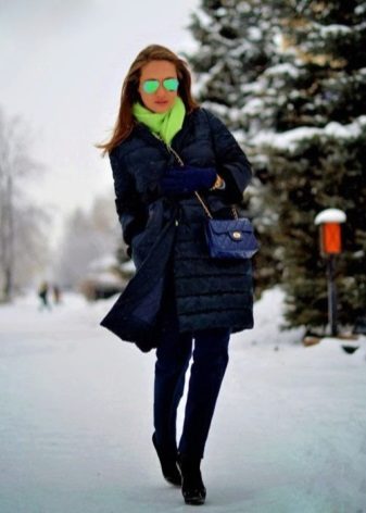 Skirts and dresses of medium length or short are well suited to an elongated bolognevo coat. With a coat of bologna, knee-high boots look good. Pantyhose should be selected to match the skin tone or the color of the shoe. Floor-length skirts can be combined with a short bolognese jacket. Also, with short models you can wear different styles of pants, jeans and even leggings.