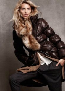 Among young people, the Bolonev coat, constructed from materials of various colors and textures, has recently spread. Sleeves, pockets, hoods are exposed to a contrasting finish. Particularly impressive is the combination of bologna with leather, suede, wool and fur.