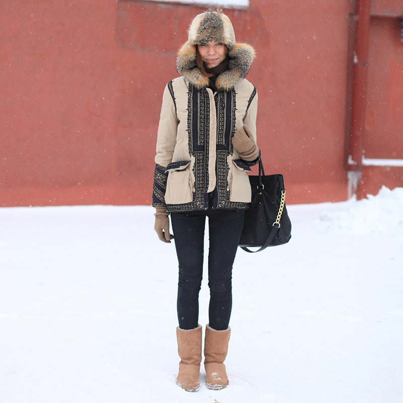 For cool weather, an insulated Bolonev coat with a hood is perfect. The hood can be decorated with fur, both natural and artificial.