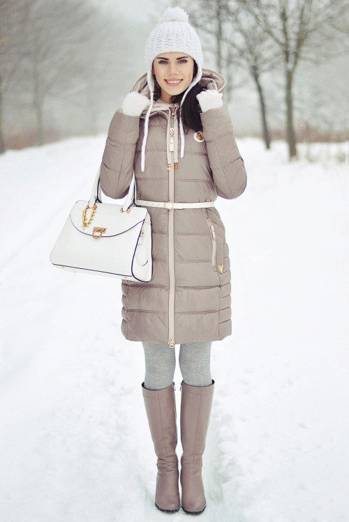 Hats, scarves, snoods, stoles and gloves should be selected in the same color scheme with a coat, but so that they do not merge with the outerwear. If the bologna coat is made in soothing shades, then you can complement the image with more rich colors.