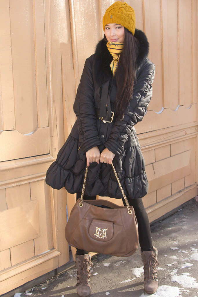 The length of the products from Bologna can be very different - from long, below the ankle to mini-coats. Long coats from Bologna are extremely warm, you can wear any clothes under them, but they are not very practical, especially in bright colors.