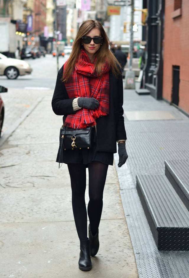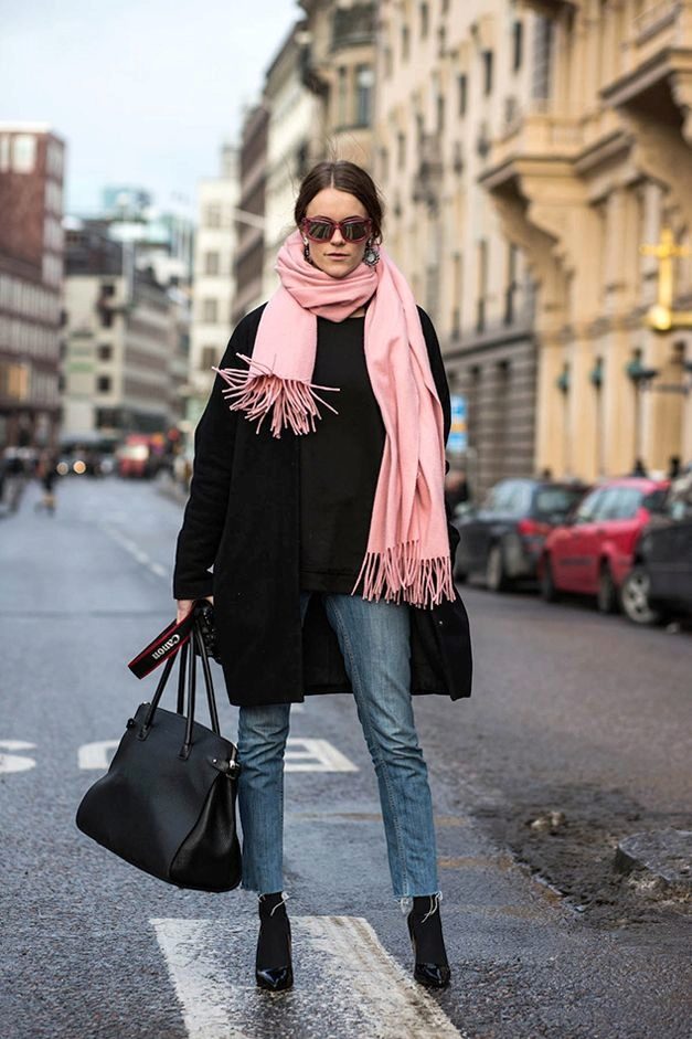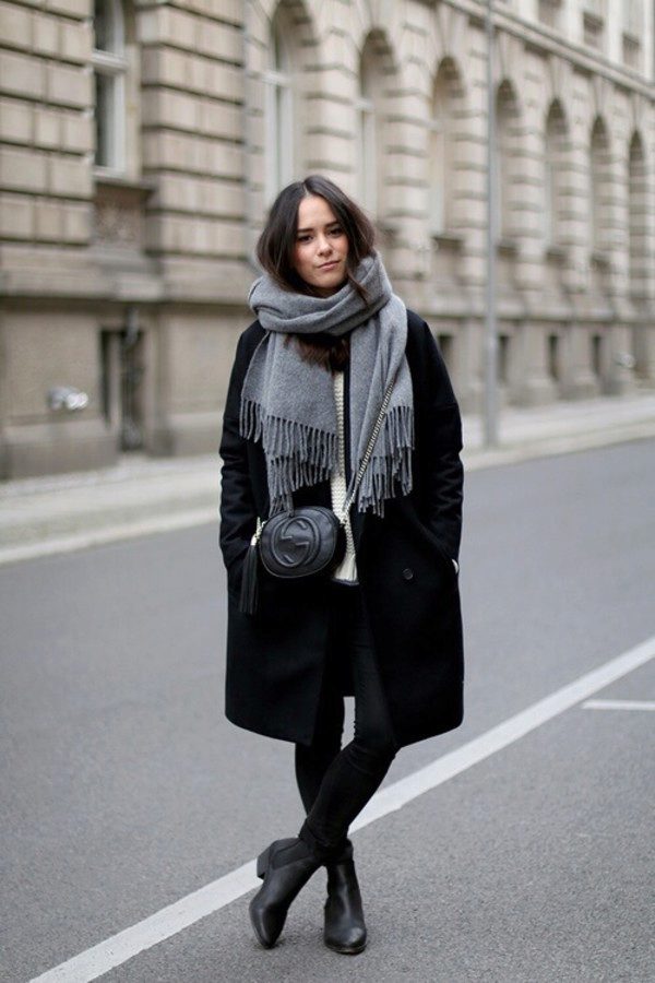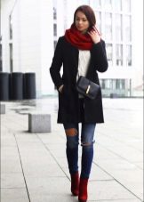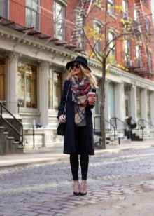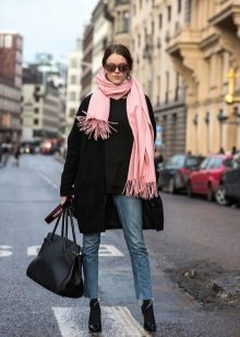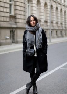 Scarves can be knitted and almost the length to the knees, and graceful shawls, stoles, silk scarves. You can wear a headscarf as a headdress with a classic coat. Contrast-colored scarves are best combined with suitable hats or gloves.