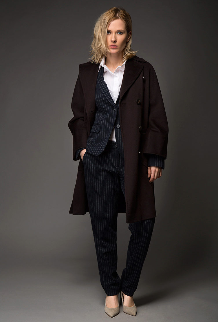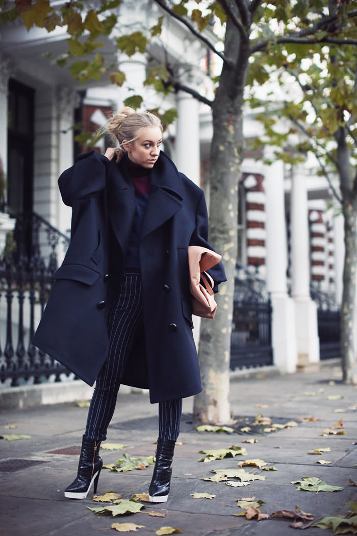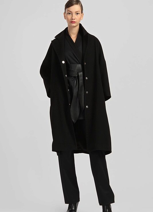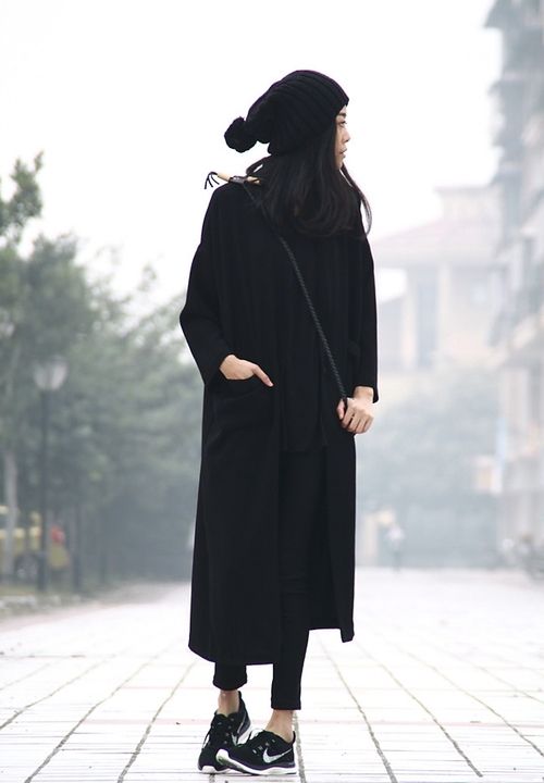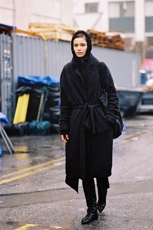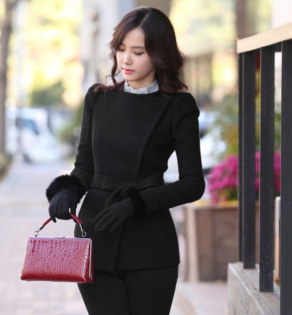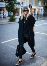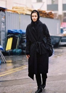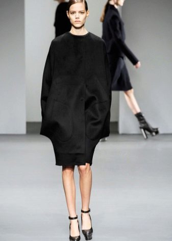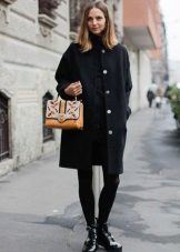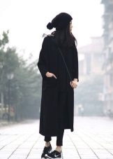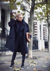 The overcoat will be relevant, free and voluminous, it sometimes looks like a robe. Long below the hips, and of the additional elements used belts, sewn pockets, hoods, large collars. With the right accessories, the baggy coat will look very stylish and bright on the young lady, even considering the black color of the product. Another popular style in youth fashion is the “cocoon”, when the coat is wide in the waist and hips, and then narrows.