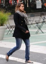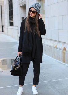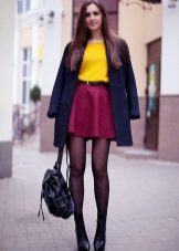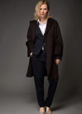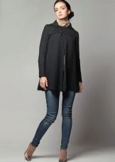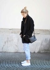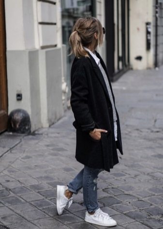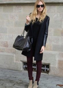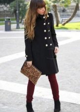 There are hardly any restrictions on the combination of various clothes with a coat. Under it you can wear everything: tops and T-shirts, blouses and shirts, sweatshirts and sweatshirts, knitted sweaters and silk tunics.