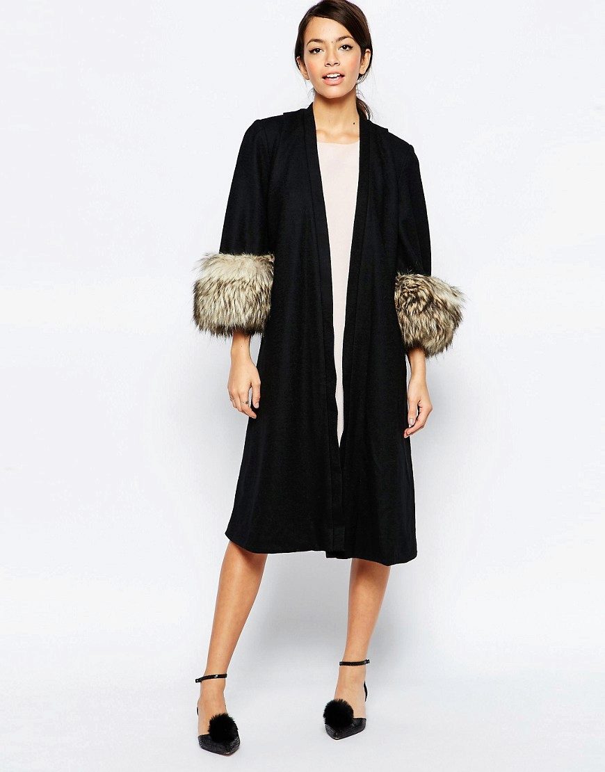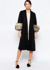 The leader of all the decorations of this year is the fur, and especially the fur collar, although there are also fur cuffs, pockets, trim on the edge of the hood or hem. Black, white, red, brown, gray fur looks more harmonious on a black coat.