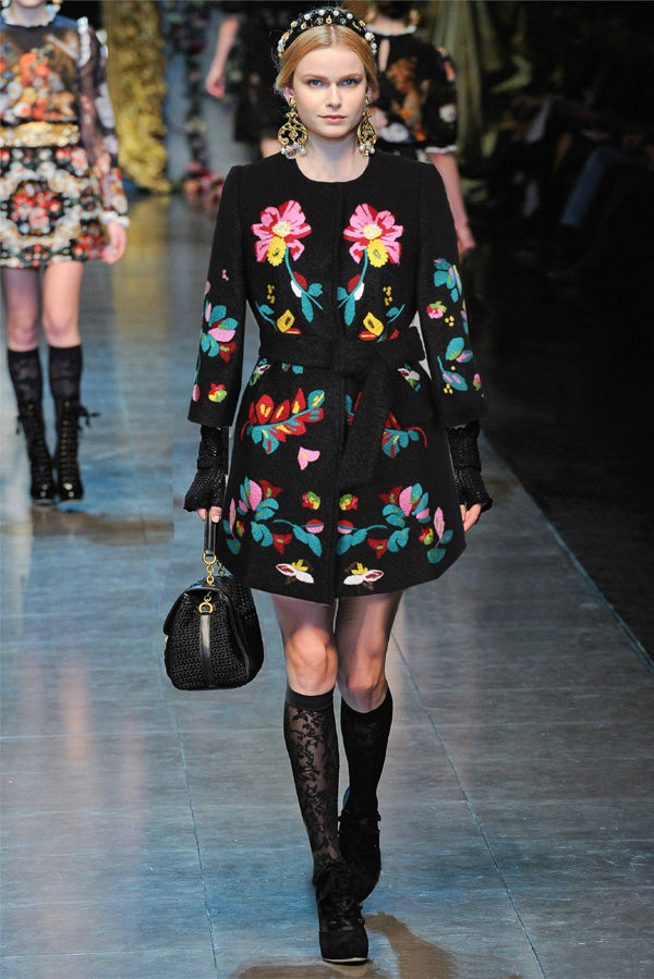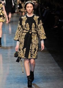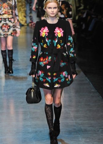 This year, animalistic and floral ornaments are in fashion, which are laid out with appliqués or embroidered on fabric. The most vivid and rich in colors are ethnic motifs in drawings. On black, they look particularly rich. Possible on the coat and print, most often it is a cell of different size, style and color.As for the decor, everything - lace, buttons, stripes, belt - can be deliberately executed in a bright or variegated scale, creating a contrast with a dark base.