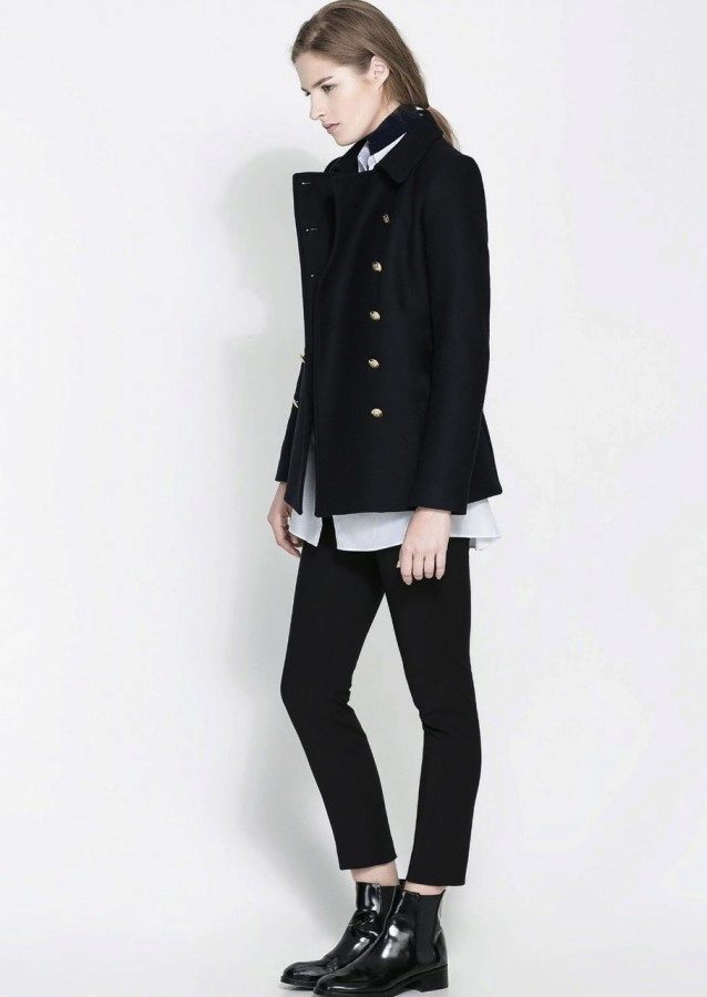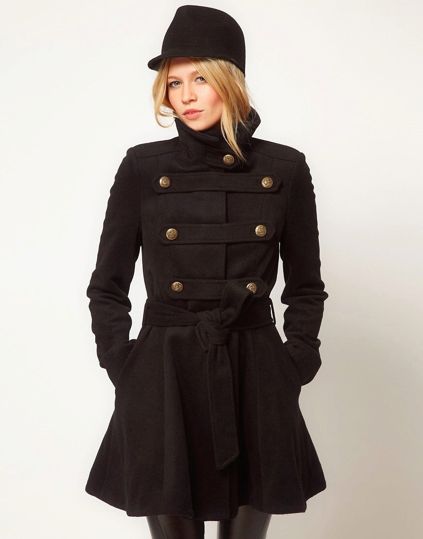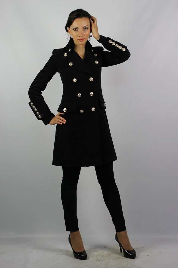 Military style has its own characteristics. He can have hoods and large pockets, themed stripes and metal parts. And in general, the appearance of such a coat resembles a military frock coat.