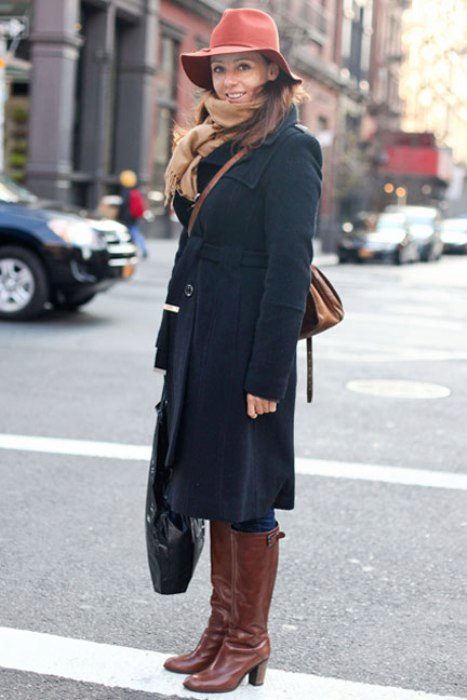 With classic strict models, neat hats and berets are best, with oversized coats, knitted hats, with fur coats and broad-brimmed hats. It is preferable to choose products monophonic, combined in color with the coat itself or with other accessories, shoes.