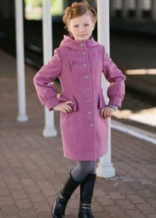 This coat well emphasizes the figure - another excellent solution for young ladies of secondary school age. This coat will look great with feminine things and accessories, just like mom: boots with a small heel, beret, gloves, etc.