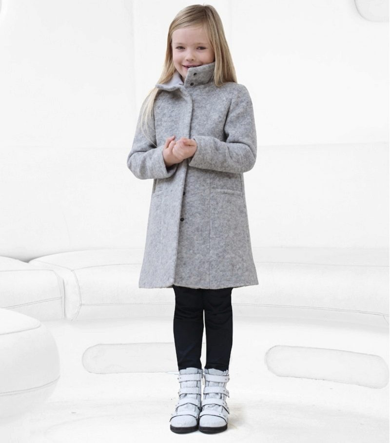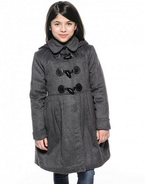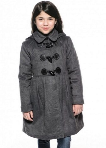 Gray and brown drape coats are classic solutions that are always in demand. Since we are talking about children's models, it is recommended to choose a coat, decorated with bright elements - to make the image more lively and cheerful.