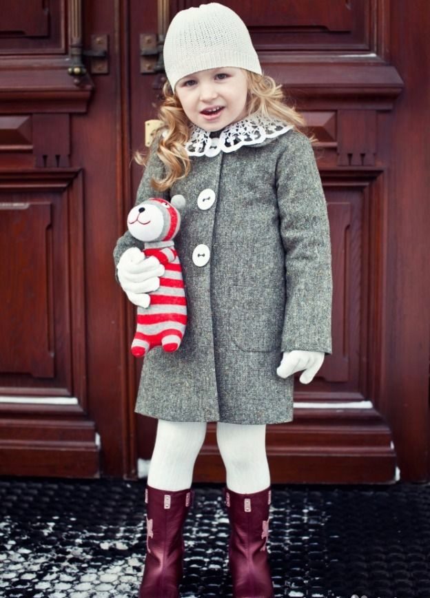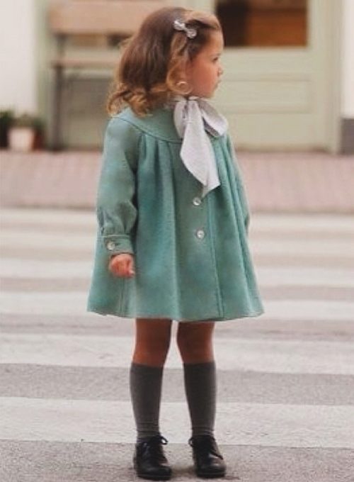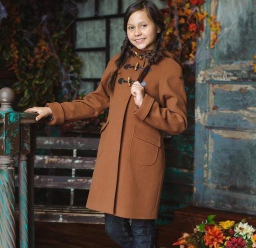 A great option for older girls who already want to look smart and a little flirty. Drape coats with pleats and a yoke on the belt look very nice.