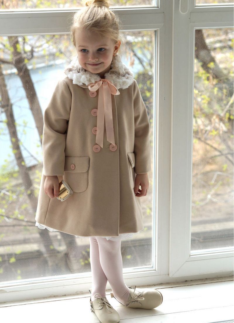The coat of drape for a girl in the fall-spring season fits well with a variety of things, the main thing is that your princess is warm and cozy.