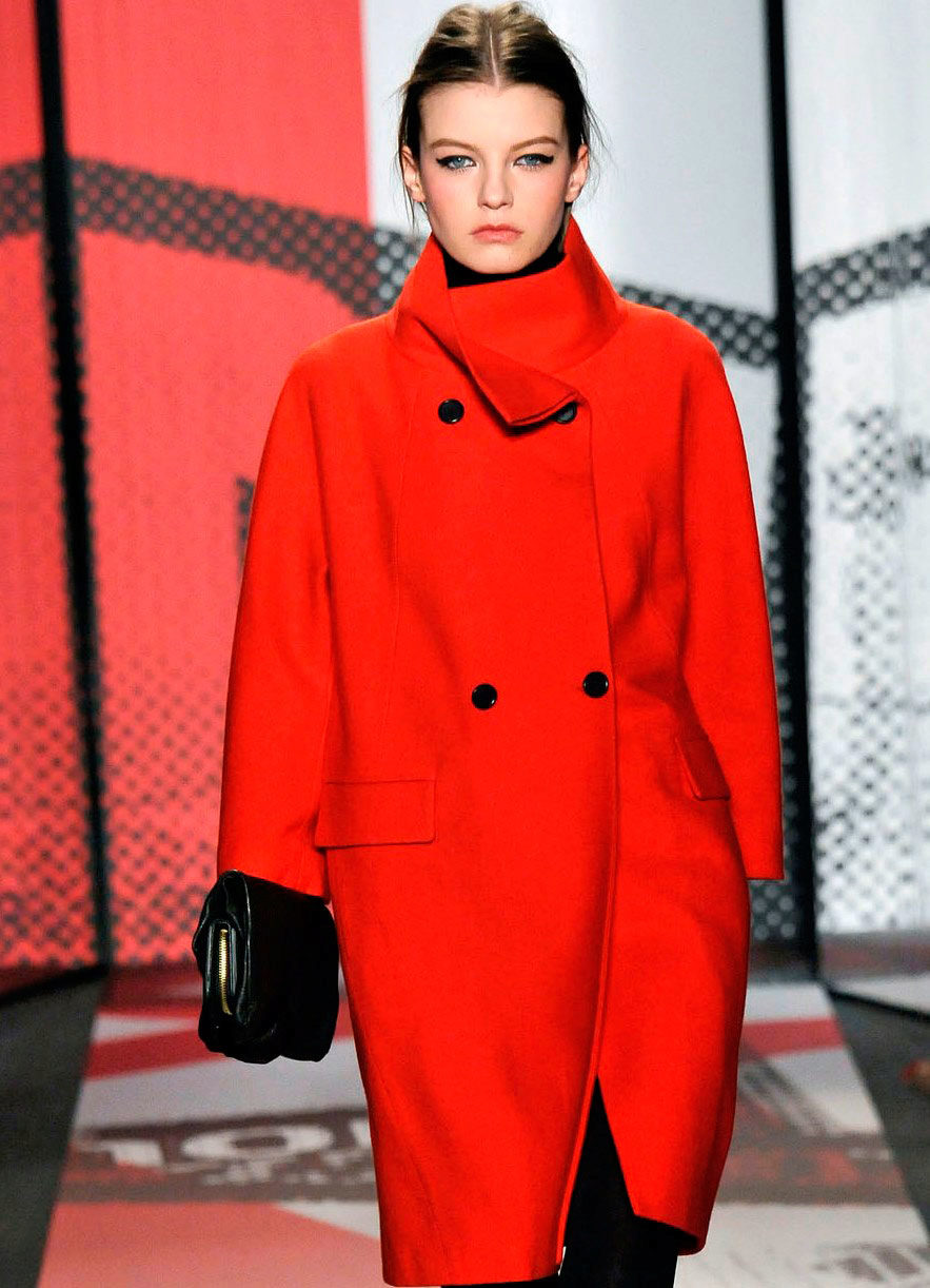 Fashion designers are increasingly moving away from the basic colors of the coat, which affects the popular trends. In Les Copains, Burberry Prorsum, Sportmax, Brioni Luisa, Martin Grant, Beccaria you can find bright yellow, blue, red, emerald, burgundy shades.