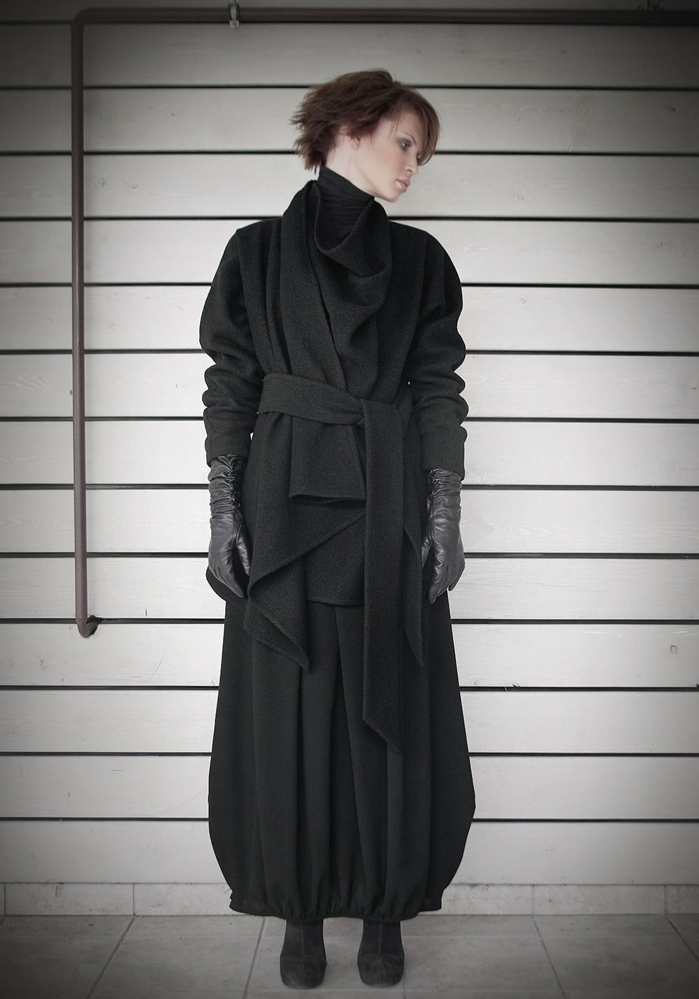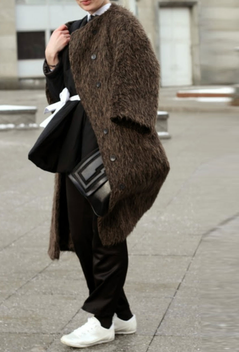 In Asya Malbershtein, wool and cashmere coexist with leather sleeves, just like Nadezhda Khokhlova, who, moreover, has a frequent absence of collars. The coat from Tanya Skazka uses an exclusive material with a shiny finish, so that the color gets different shades depending on the light.