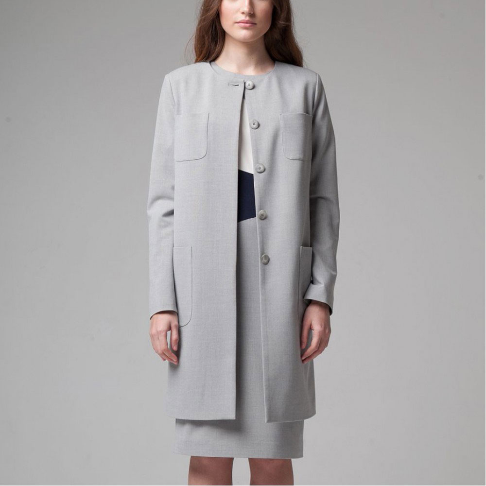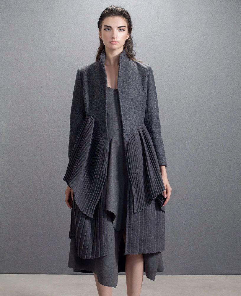Fashion house EKATERINA SMOLINA is a wide model line, in which there is a place as a classic model of a straight or fitted style, and original products. For example, in this year’s collection there are often coats with author prints, pleated skirts, scallops. There are unusual coats, for example, double-sided or transforming coats. In the catalog of this fashion house it is easiest to find bright and unusual colors (cornflower, aquamarine, blue, pink), and dark (brown, black, gray) are presented in smaller quantities.