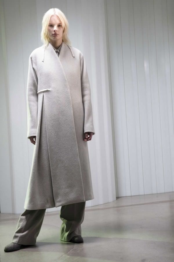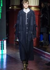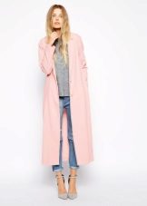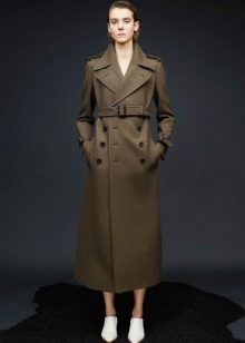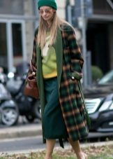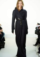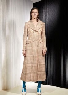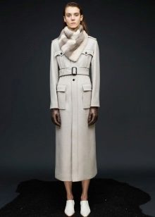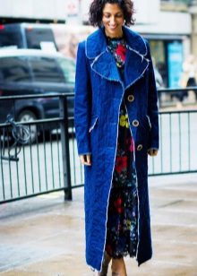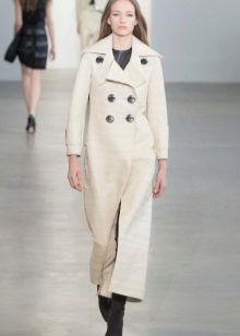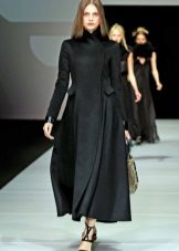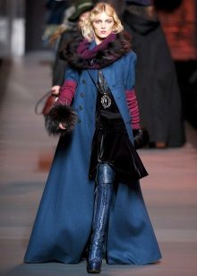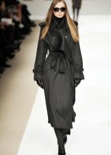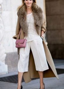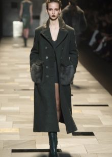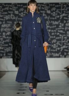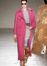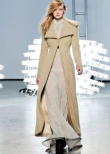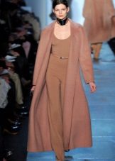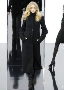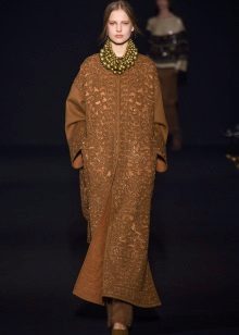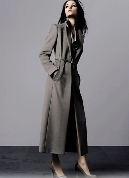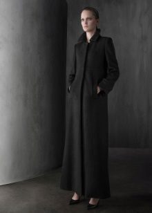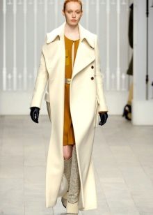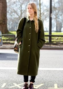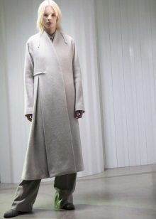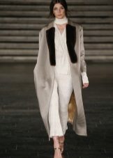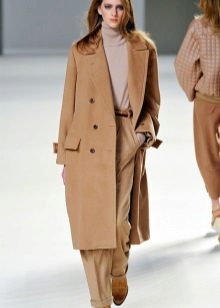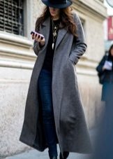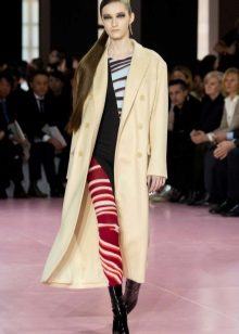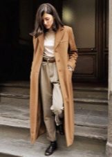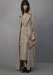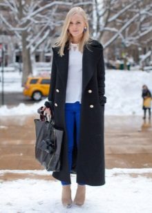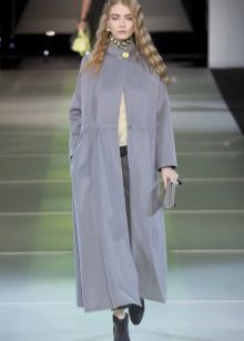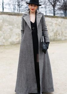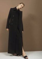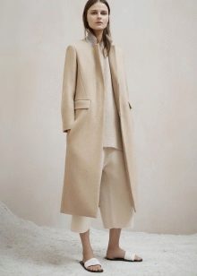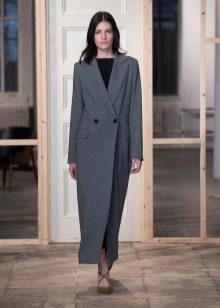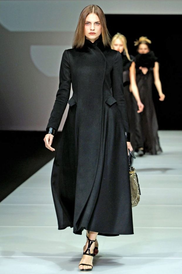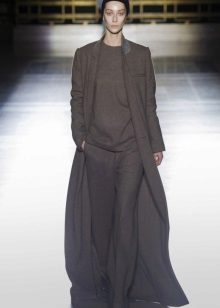 This model of the coat allows you to wear trousers flared and wide models, because under the long coat itself they will not be so visible and will not seem out of place.