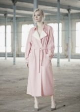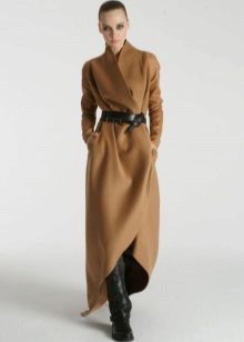 Often, having no fasteners, the coat is equipped with a beautiful fabric belt, which is made of the same material as the product itself.