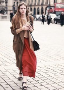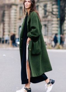 Coat straight cut, without a belt looks good with sports models of shoes such as slip-on sneakers, espadrilles, elegant sneakers and sneakers. So the image will look everyday and without excesses.