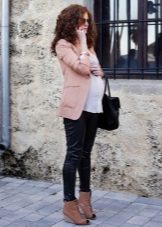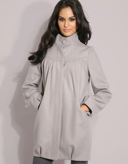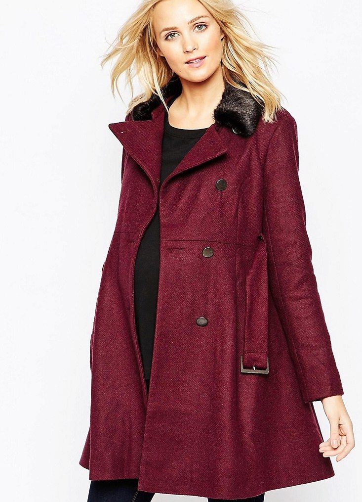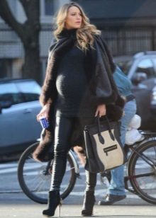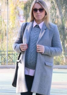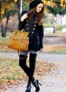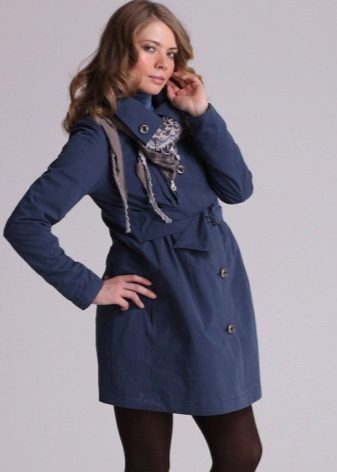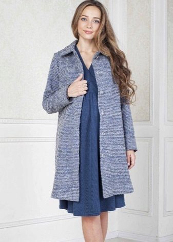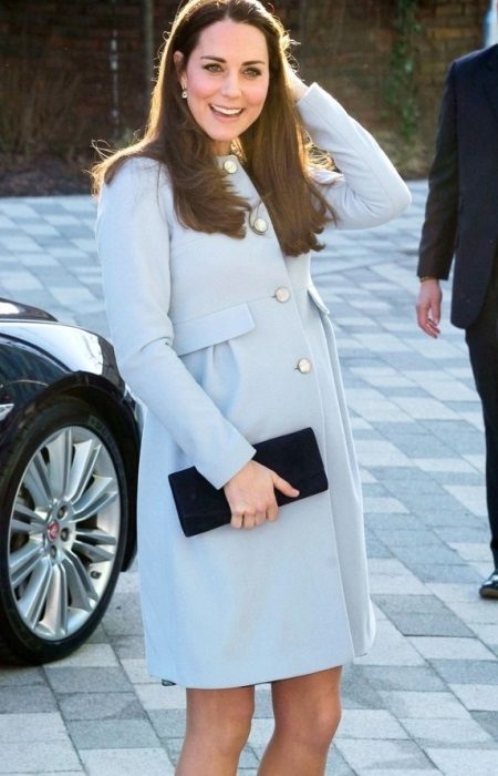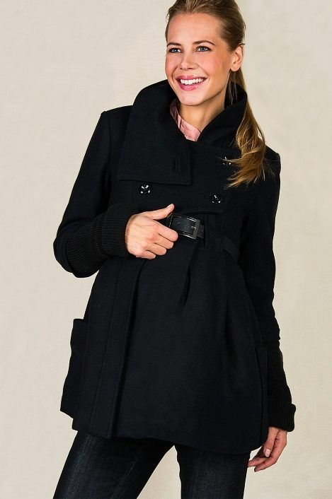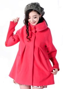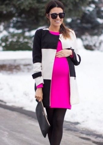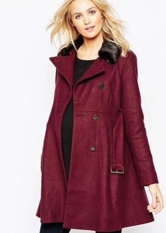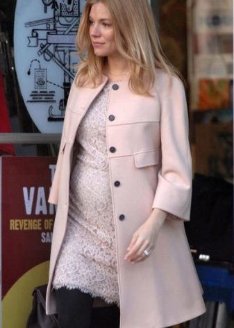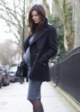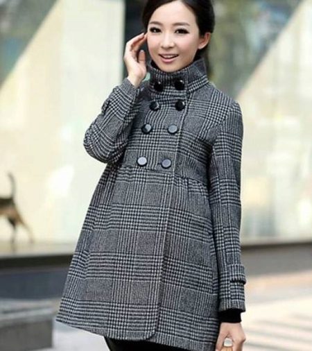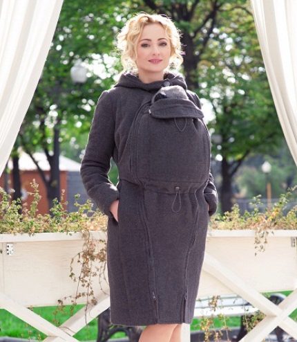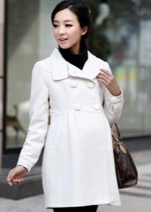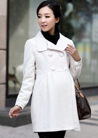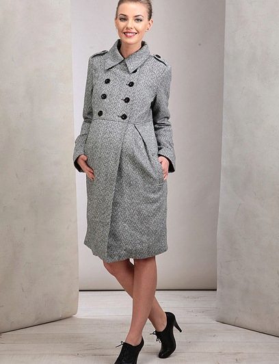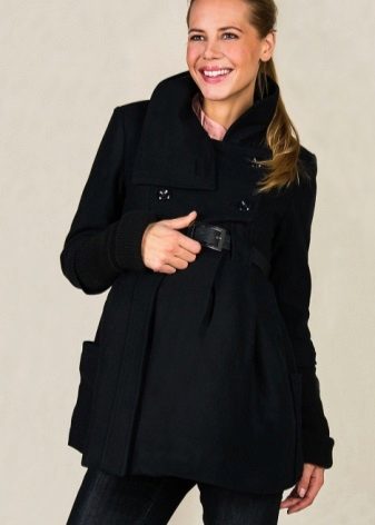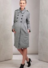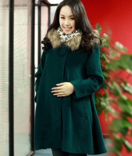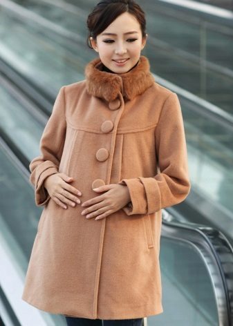 The most popular and most optimal style of coat for expectant mothers is - trapezium. Model, flared chest, may have an average length to the middle of the knee, or slightly shorter. The coat smoothly fits the rounded shape of the future mother, without tightening the belly and not causing discomfort during movement.
