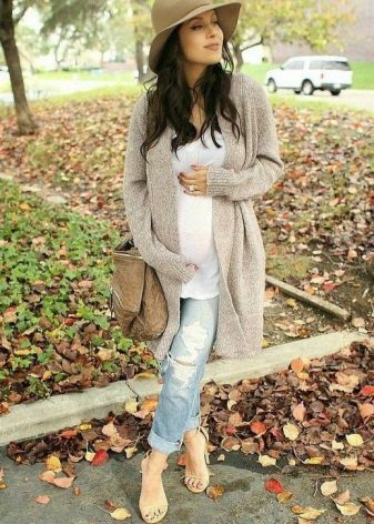 One of the trends of this season - clothing in the styleoversight". Baggy, loose, as if removed from the shoulders of other people's clothes, is the best fit for stylish and modern future moms.