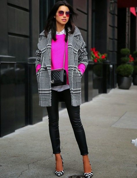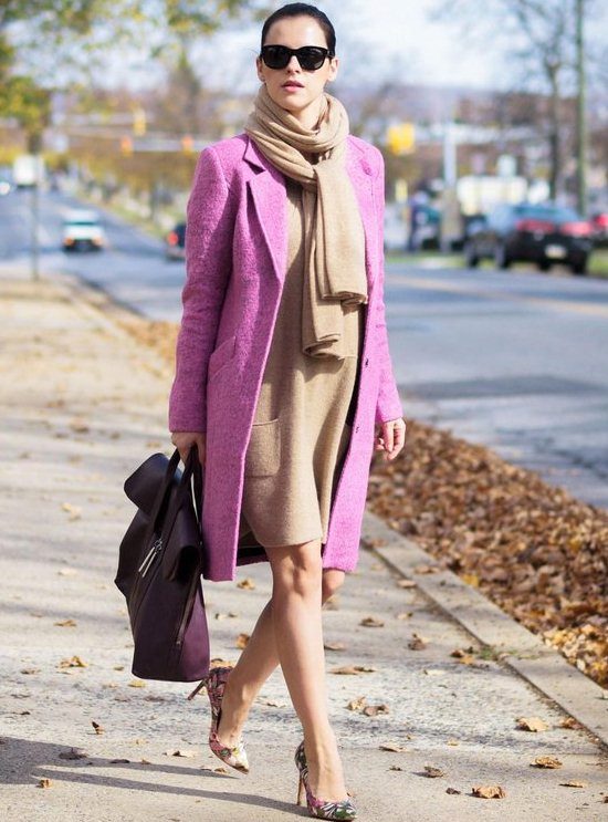 Under a bright, saturated color coat is best to pick clothes calmer, discreet colors.