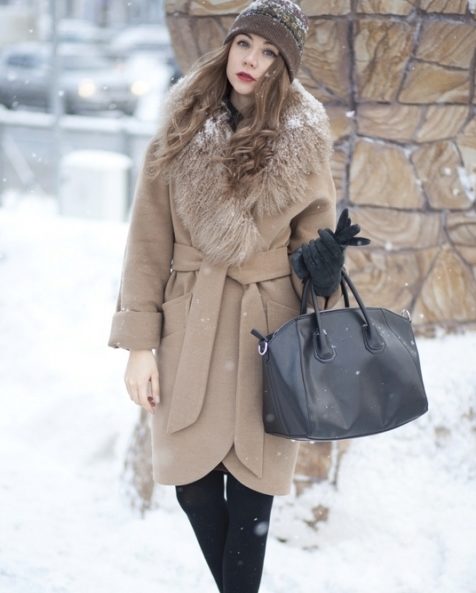 A beautiful hat, an elegant beret or a stylish hat will be a fitting addition to the coat. It is good, if the headdress will be sustained in the same color scale, as the outerwear. Then the outfit will look as stylish and harmonious as possible.