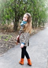 Under the coat dress dresses and sundresses, blouses, sweaters, shirts with jeans or pants. Do not forget about the warm tights, which are great combined with skirts and shorts. As accessories, you can pick up a little fashionista funny handbags, colorful umbrellas, brooches, hairpins in the hair to match the coat.