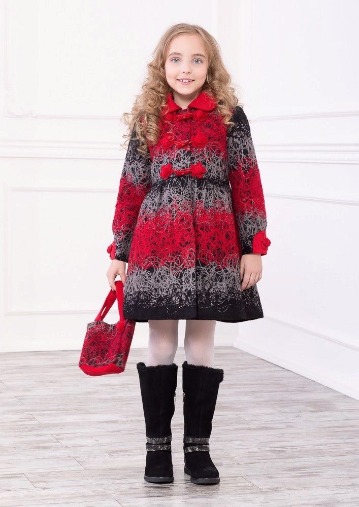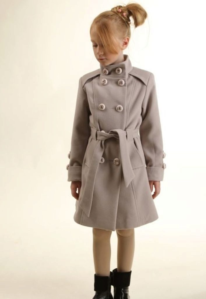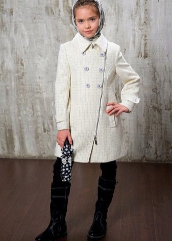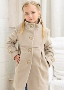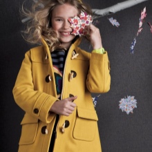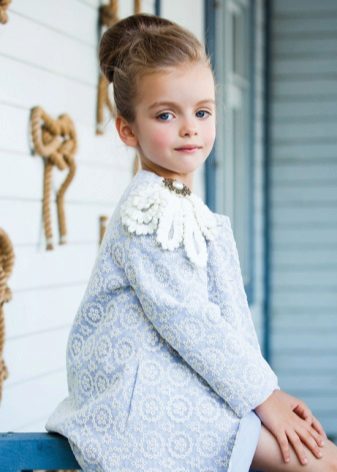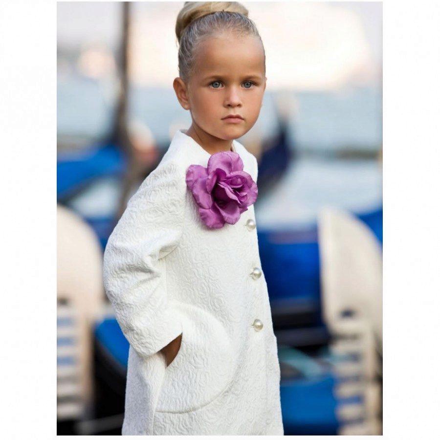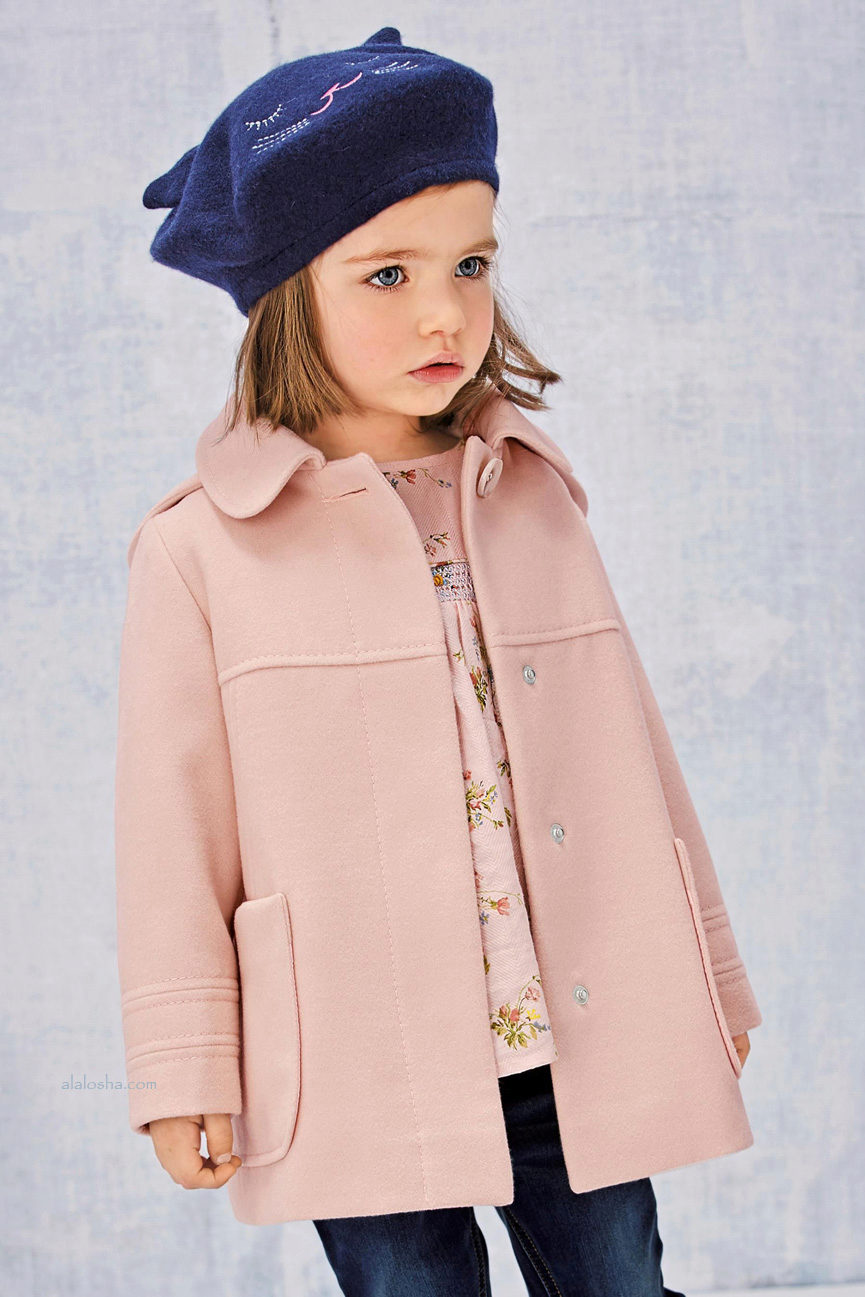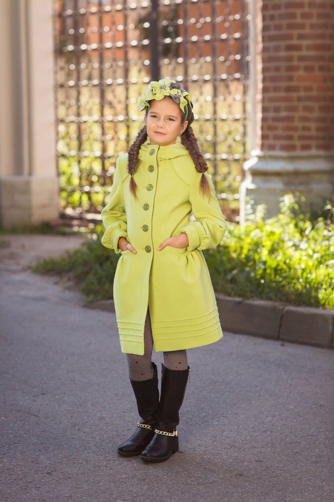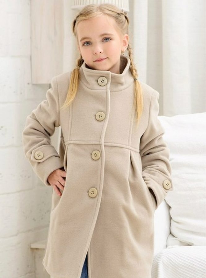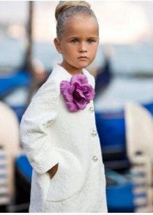 This year a romantic and gentle look is fashionable for children. To match this style, you should choose a coat of classic cut light (pink, beige, gray).