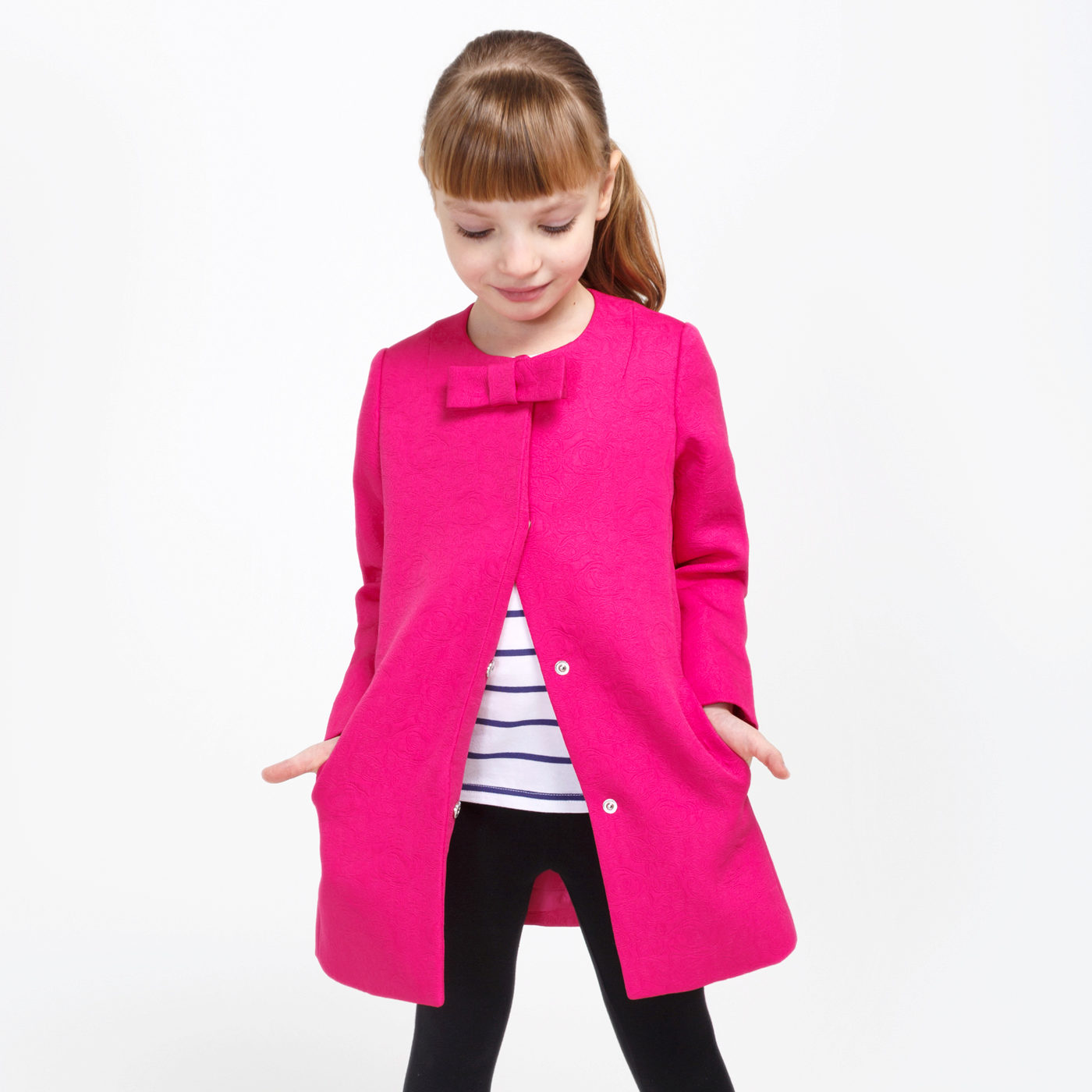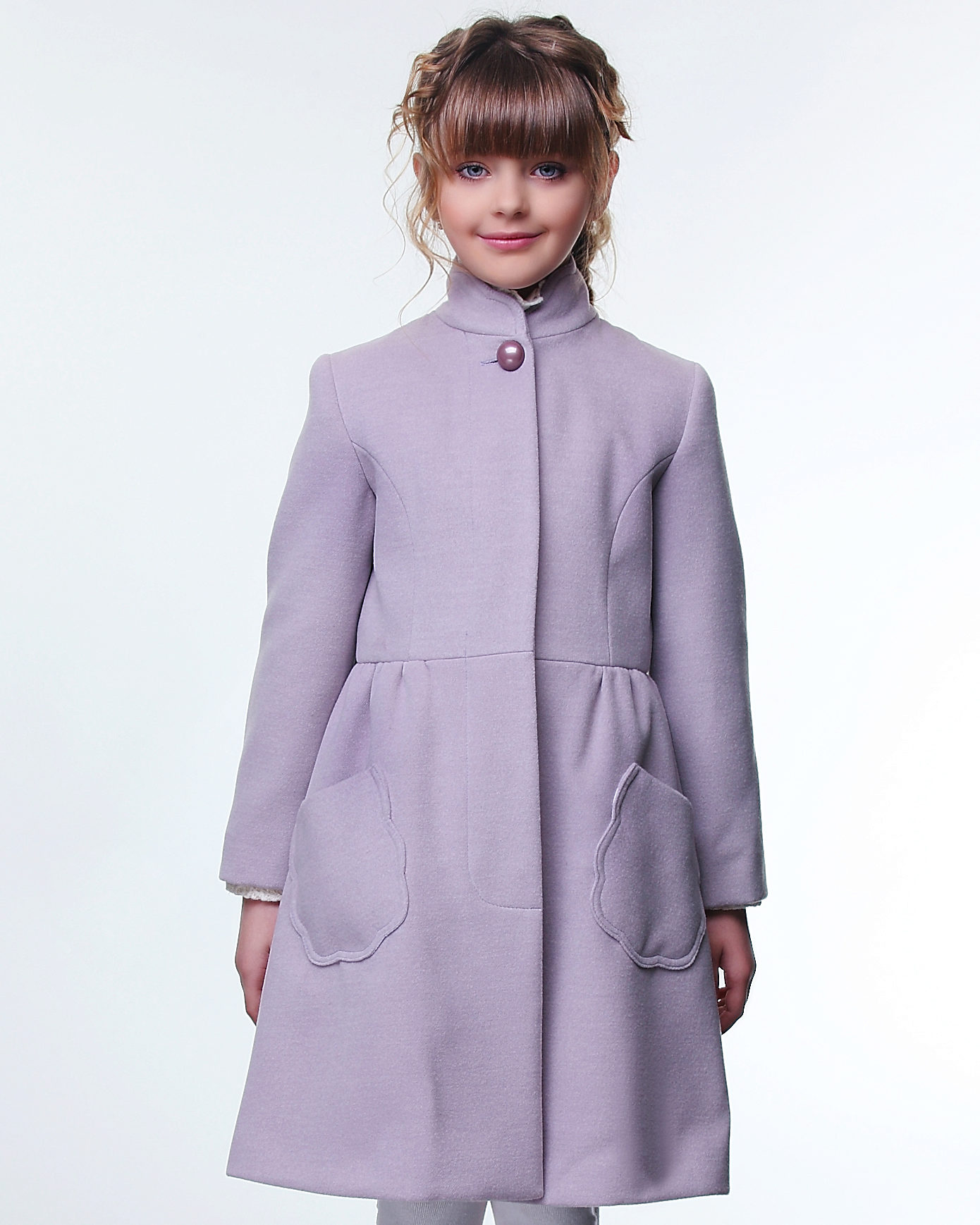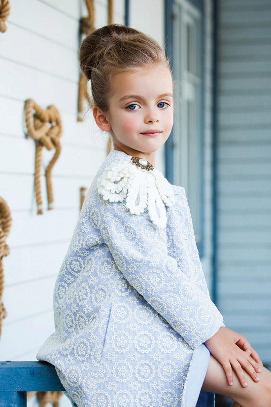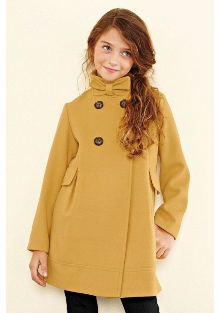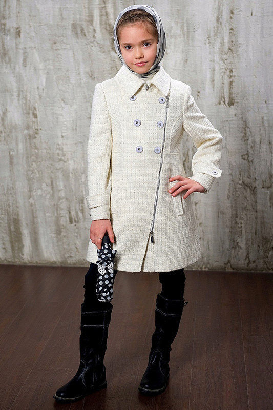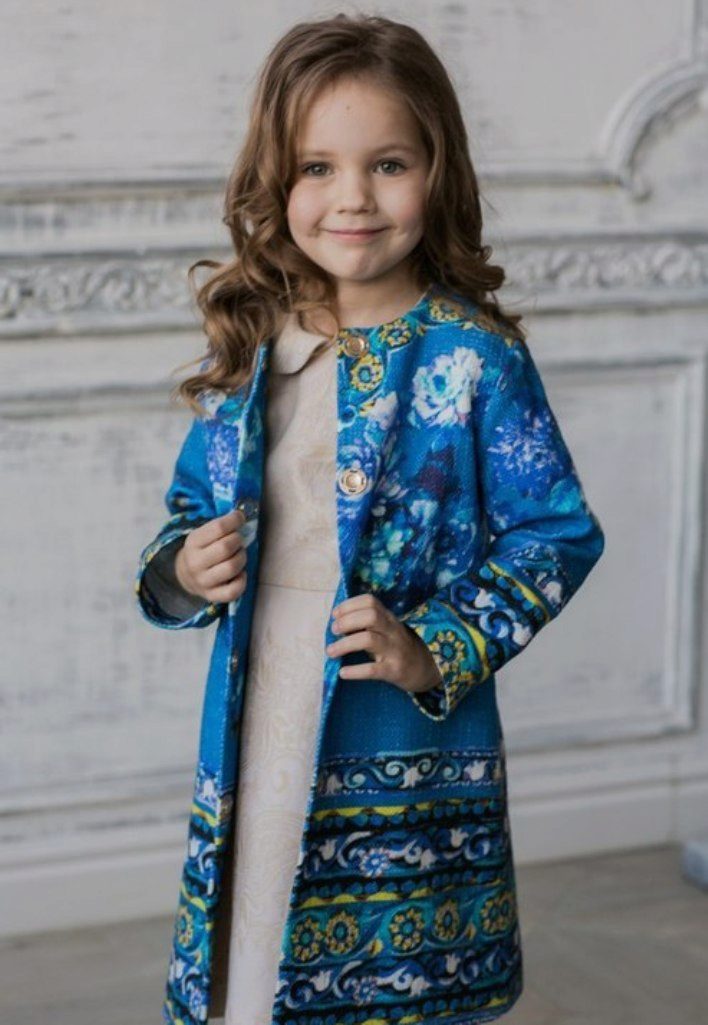 This year a romantic and gentle look is fashionable for children. To match this style, you should choose a coat of classic cut light (pink, beige, gray).