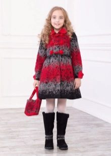 Depending on the weather, the coat can be worn with shoes, boots, long boots, rubber boots. Knitted coats look great with uggs. Be sure to find the appropriate knitted scarves and hats, berets, headphones, hats, so that the baby does not freeze.