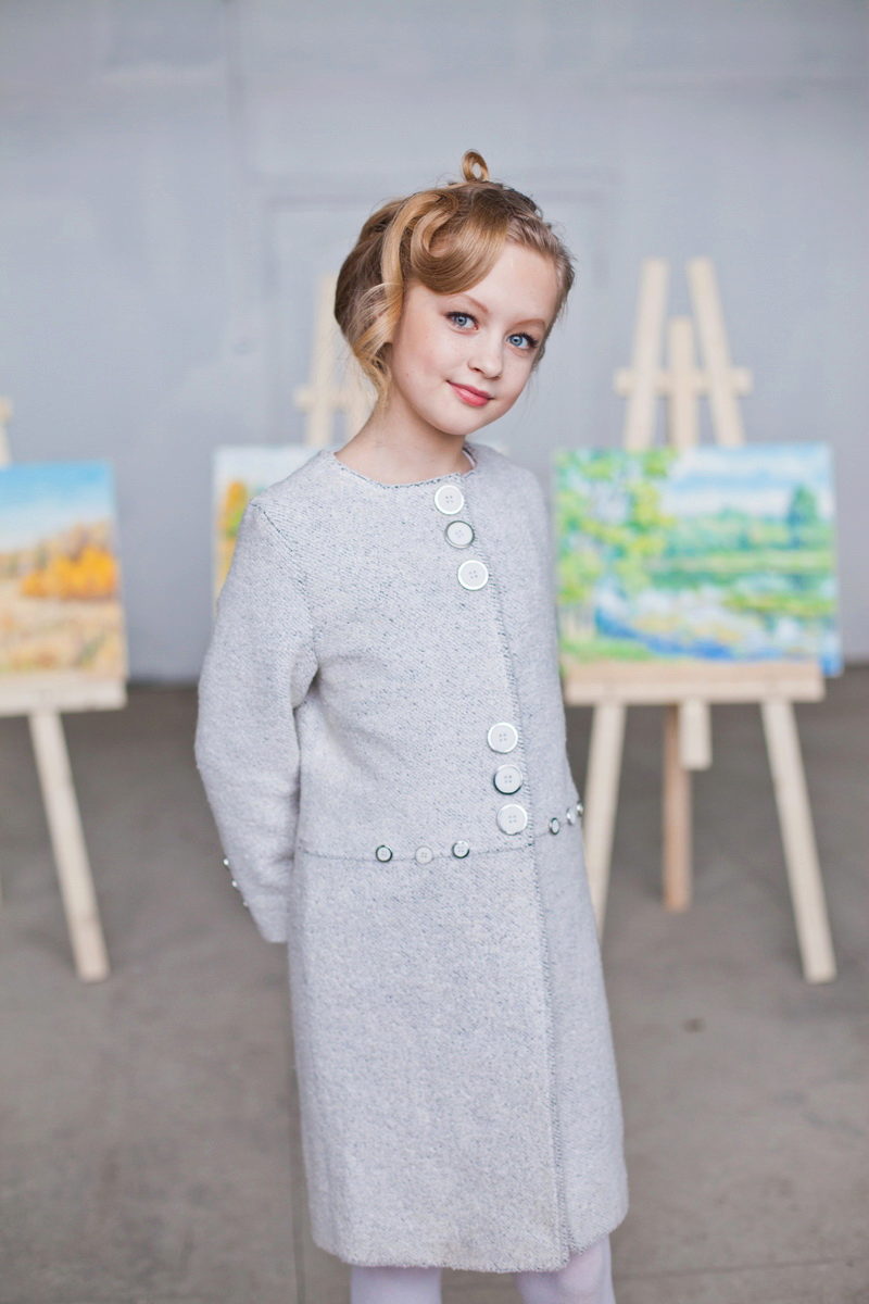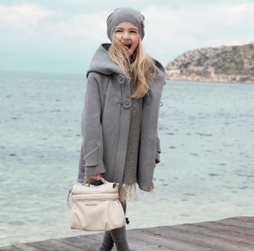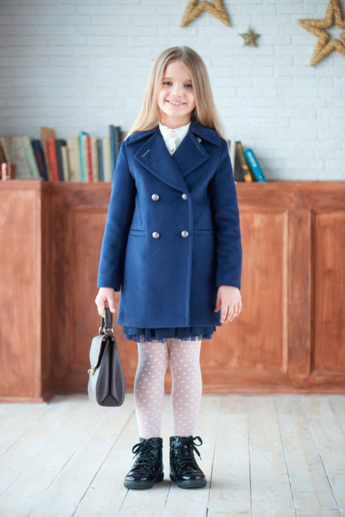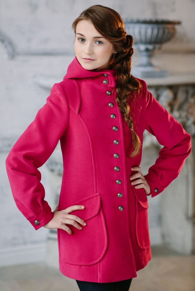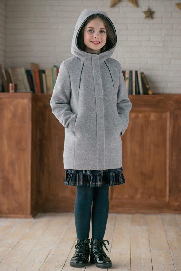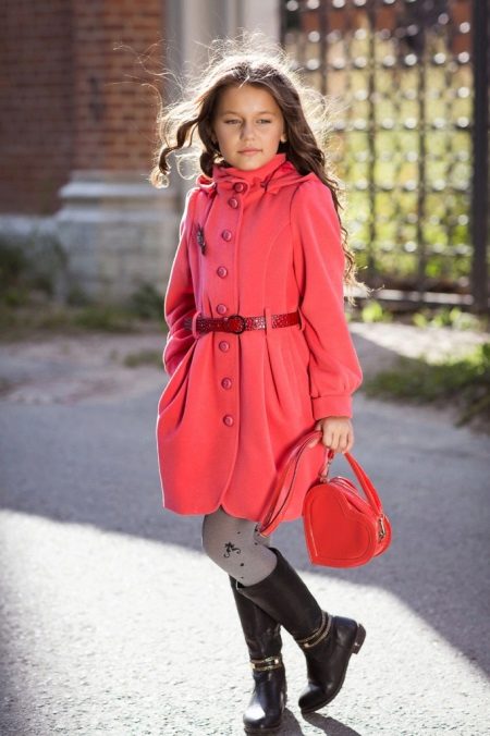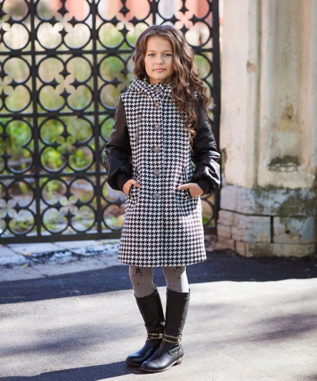 Prefer A-shaped silhouette or a fitted coat with a belt. The latter will especially appeal to older girls who want to emphasize their waist.