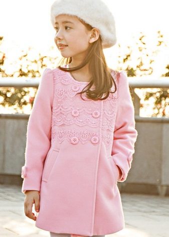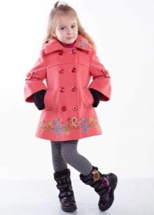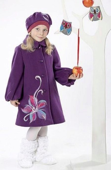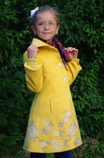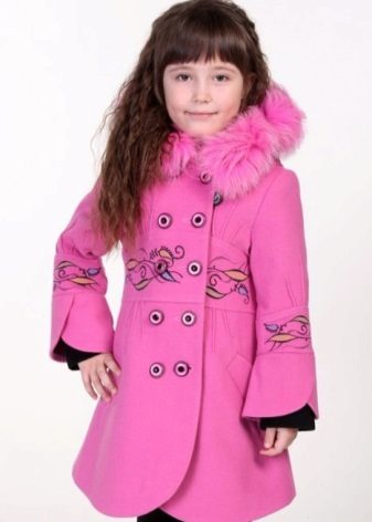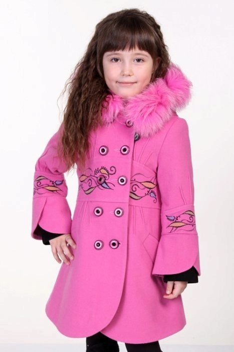 Decorative items. Coat for the smallest girls can be decorated with bright embroideryfunny appliqueinteresting plush finish etc. Older girls choose more stylish and discreet jewelry, for example, a leather appliqué in the shape of a beautiful flower, etc.