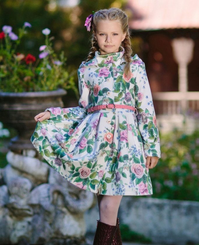 For romantic young ladies, we can recommend a demi-season coat with elegant floral print, beautiful patterns, intricate ornaments, etc.