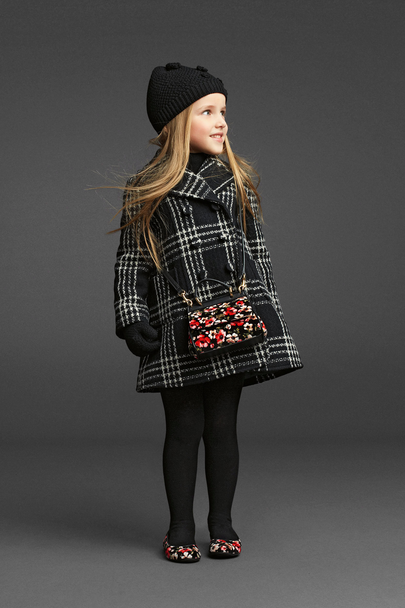 A black hat made of felt or other dense material will be a worthy addition to the demi-season coat of a restrained classic color. Elegant outfit for a little lady.