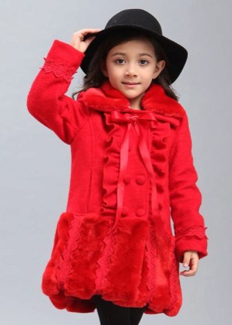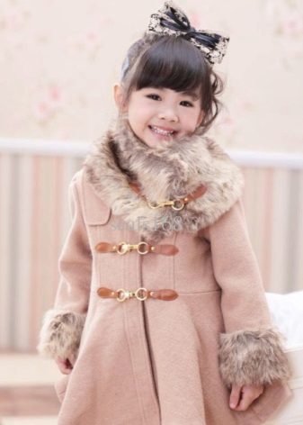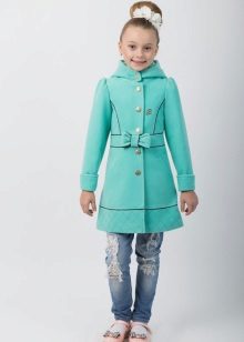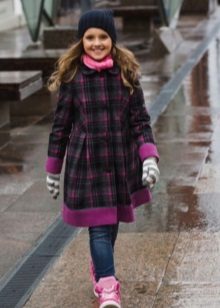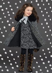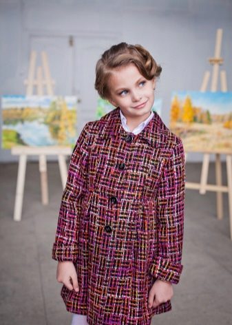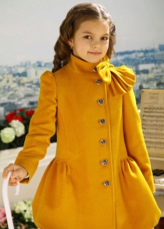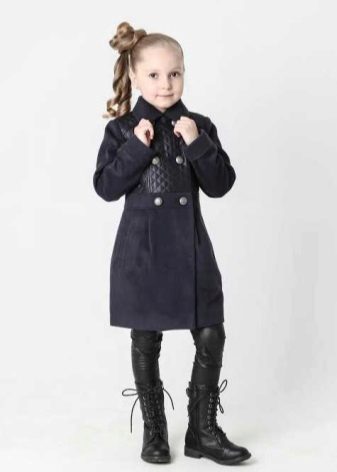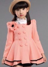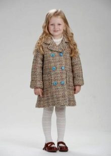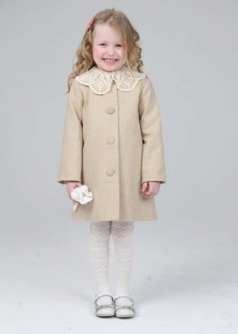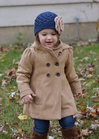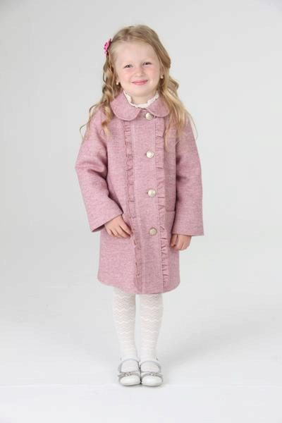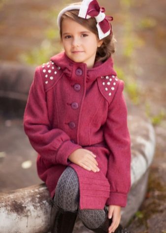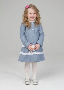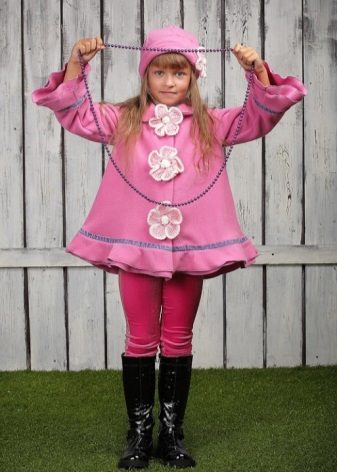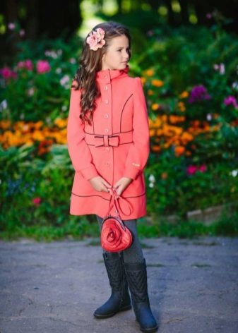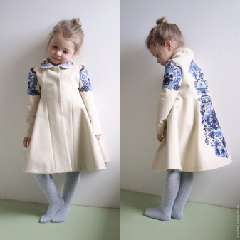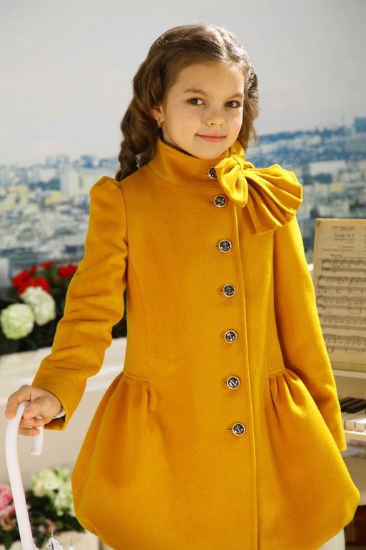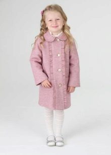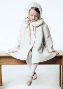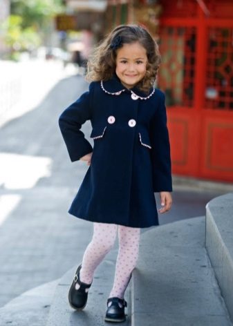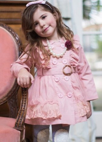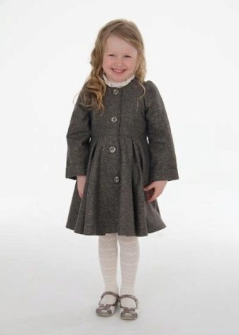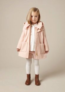 Children's coats, as well as models for adults are designed for a universal style of clothing. A girl can wear a coat under anything. The main thing is to choose shoes for the season. Under the coat you can wear a dress, jeans, trousers with a classic cut. The coat is a removable wardrobe item, it does not remain indoors. Therefore, mother needs to think about the style of clothing of the child as a whole. If this coat is in a classic style and with a drape, then beautiful dresses with frills are best suited to it.