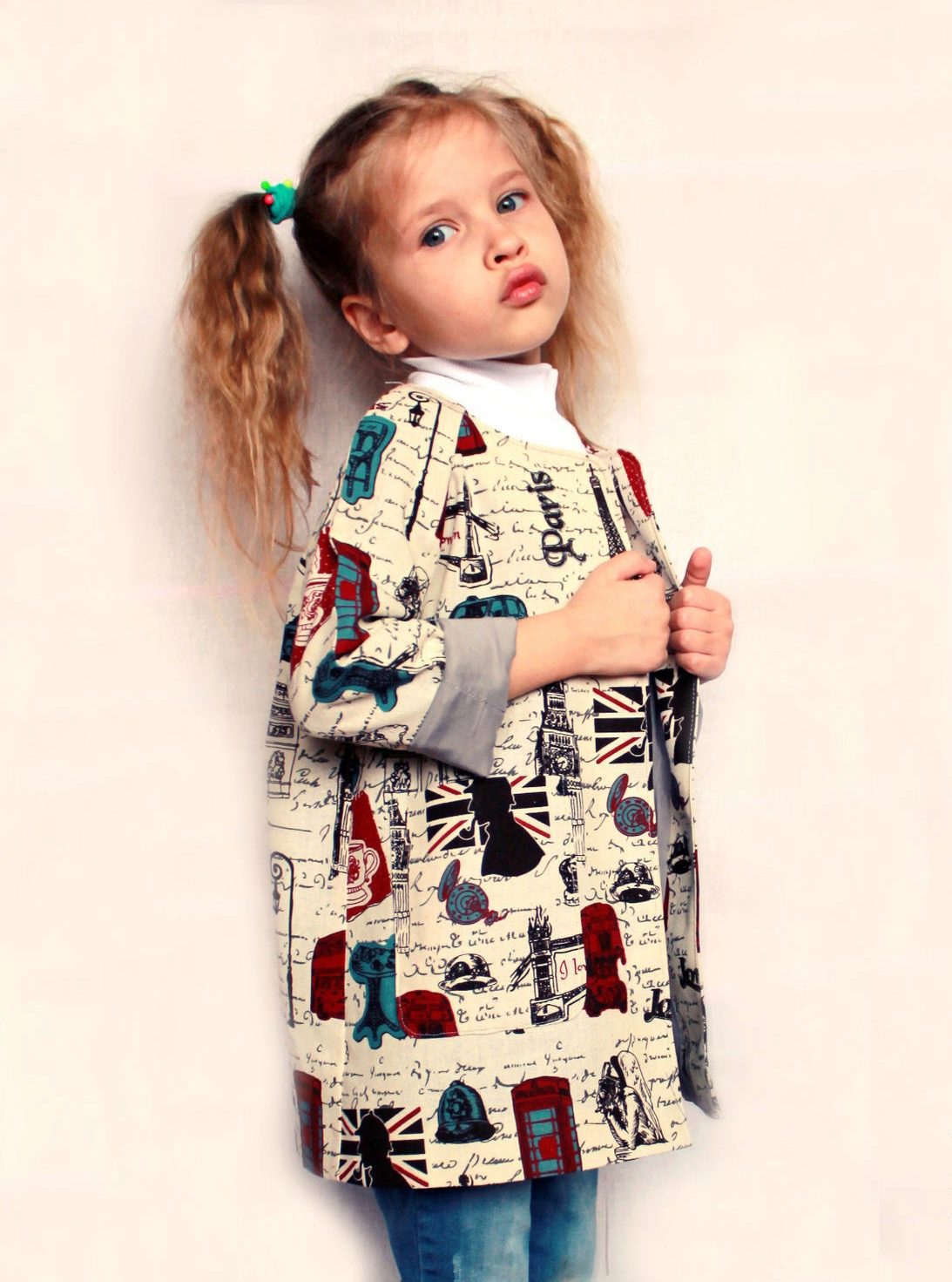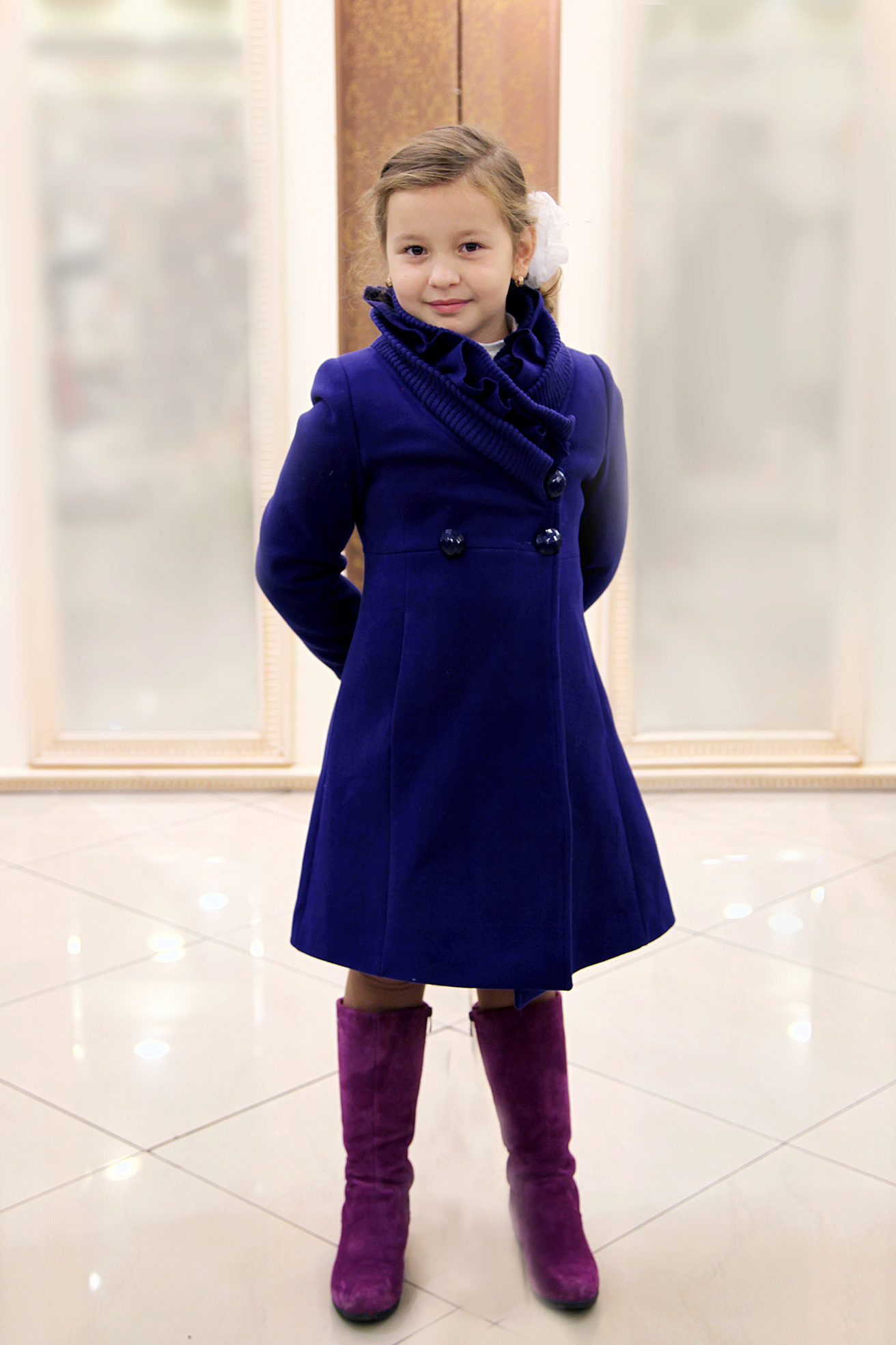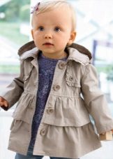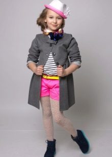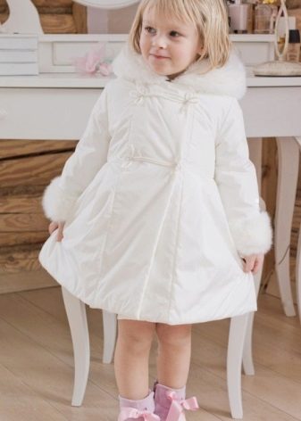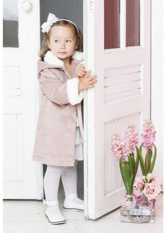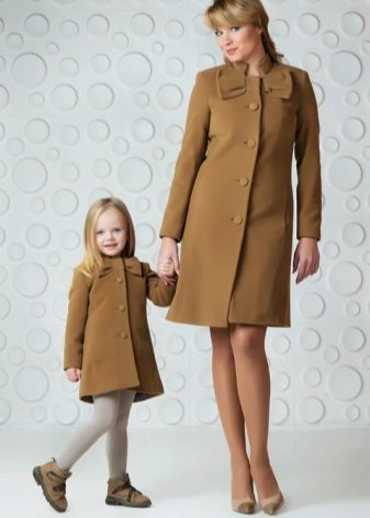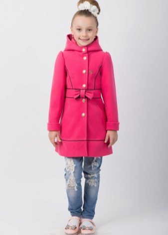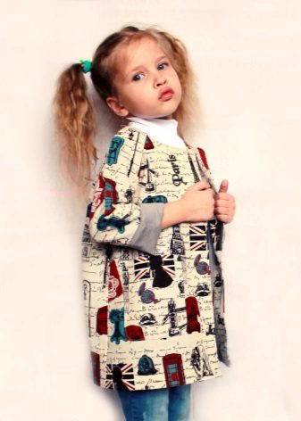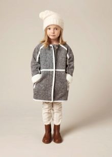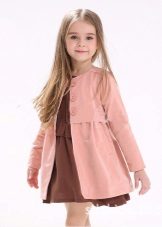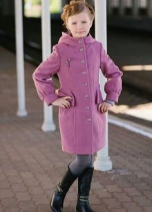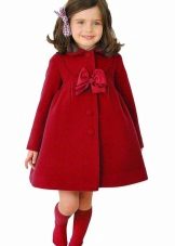 Children's coats, as well as models for adults are designed for a universal style of clothing. A girl can wear a coat under anything. The main thing is to choose shoes for the season. Under the coat you can wear a dress, jeans, trousers with a classic cut. The coat is a removable wardrobe item, it does not remain indoors. Therefore, mother needs to think about the style of clothing of the child as a whole. If this coat is in a classic style and with a drape, then beautiful dresses with frills are best suited to it.