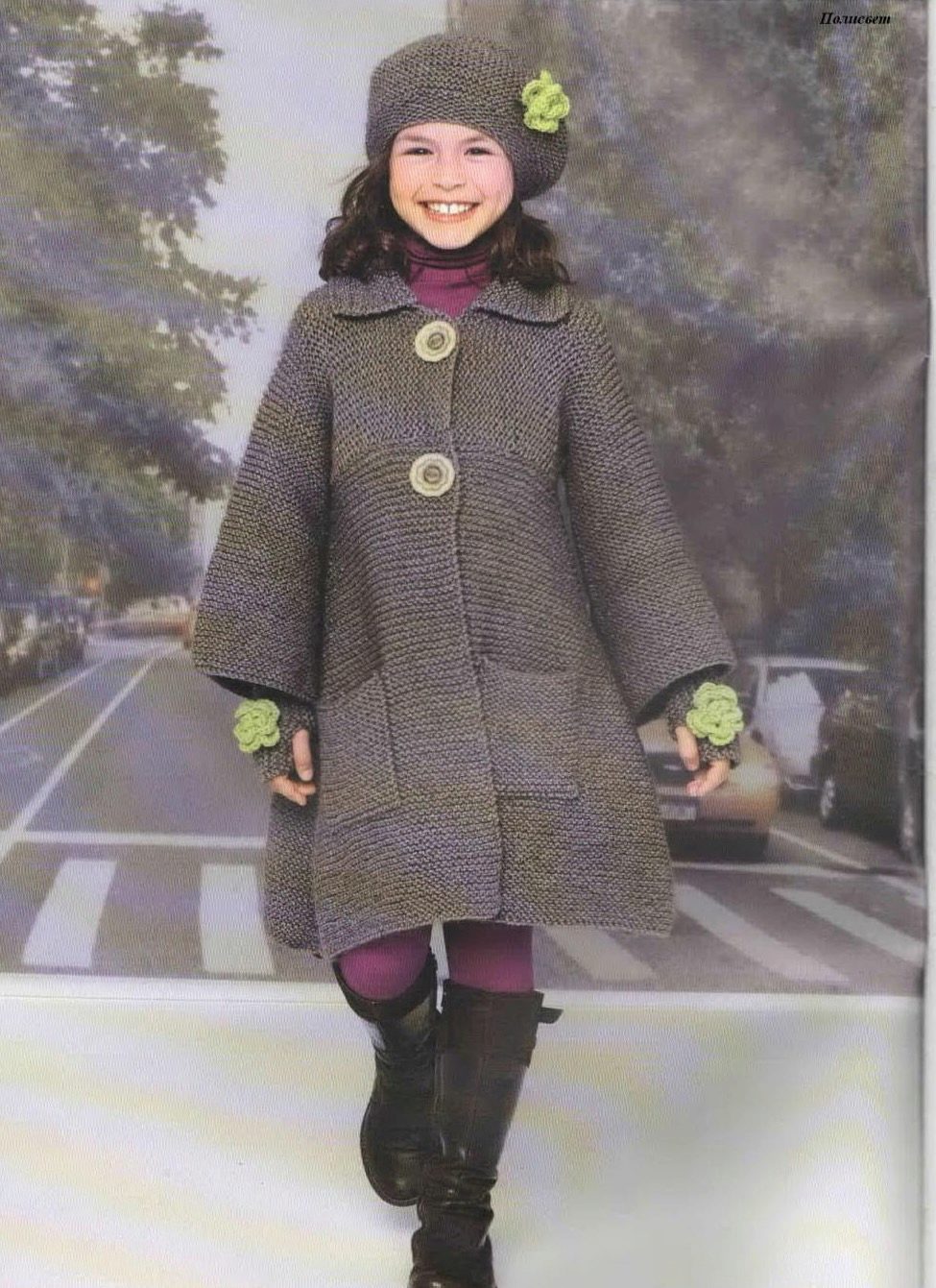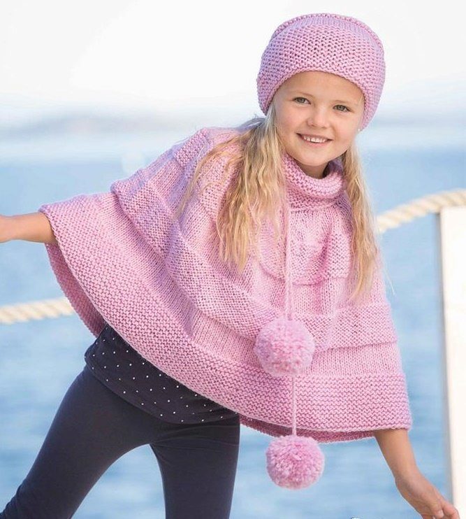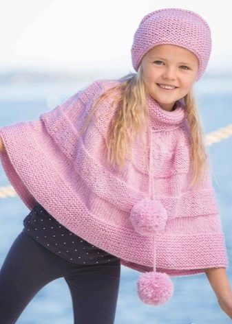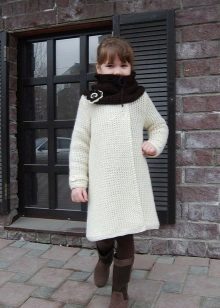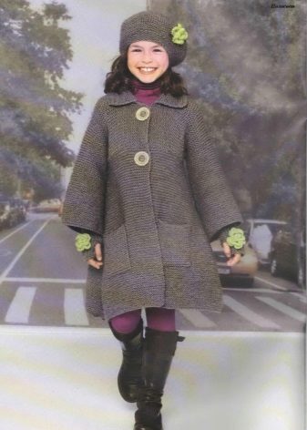 The little lady can walk in a knitted coat of a fitted or flared silhouette, short or medium length. Among the knitted items in the quality of a coat are used poncho coats or knitted warm capes. Additional decorative elements in the form of pockets, buttons, zippers only complete the image of a young fashionista.