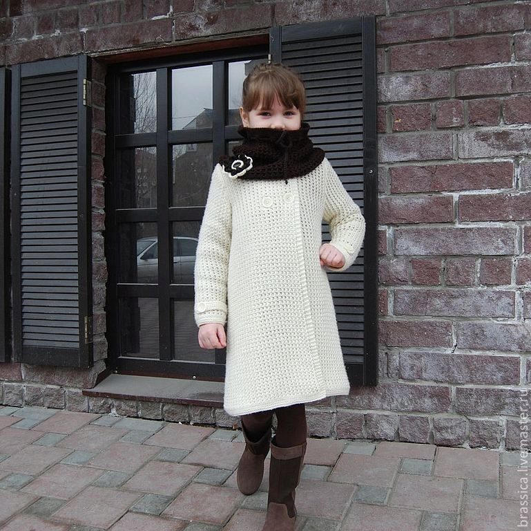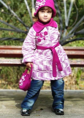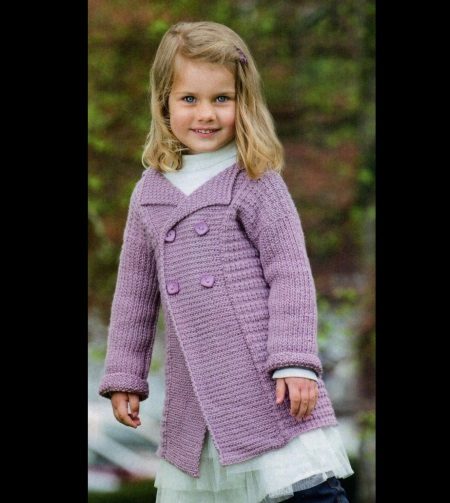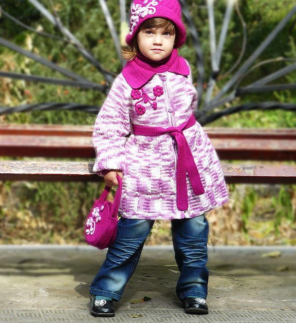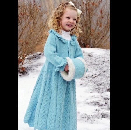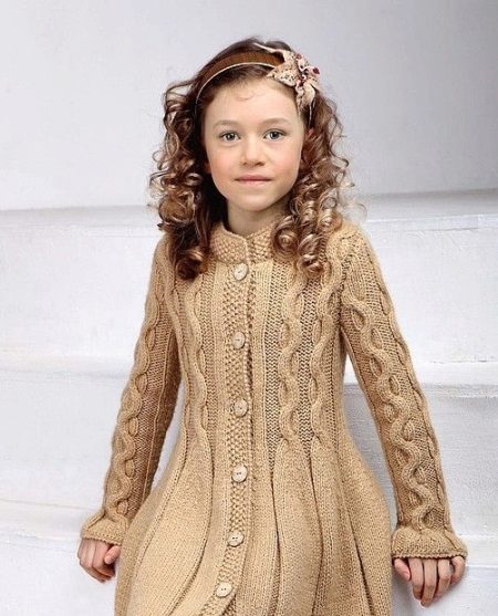 Children's knitted coat is one of the most elegant and delicate items in the wardrobe. A girl in a knitted coat will initially stand out among peers. But only on condition that my mother managed to pick up (or tie up with her own hands) a suitable coat model. Here, too, have their own fashion trends. Knitted items for winter, spring or autumn can be made in a different style. The style of such a coat is similar to one of the styles of a regular tweed or cashmere coat.