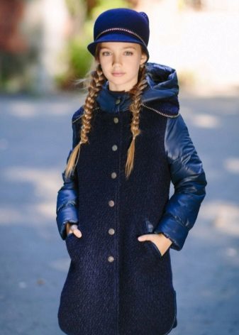The children's combined coat for the girl is often made of soft fabrics. Materials products may vary depending on the season. The main feature of these models is considered a successful combination of materials, decorative elements, composite (removable) parts. So, for example, today it’s not a problem to choose a coat model with a removable hood for an girl, with adjustable length.