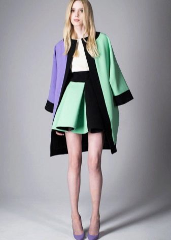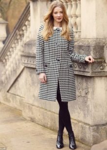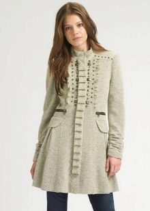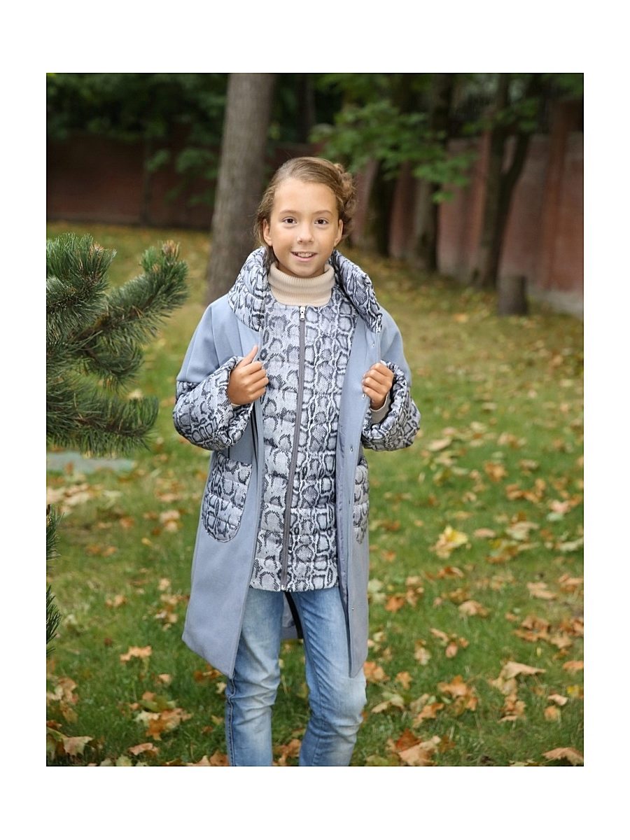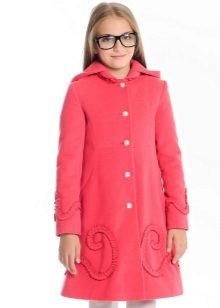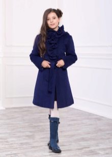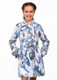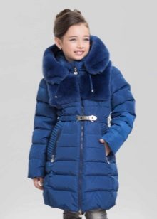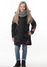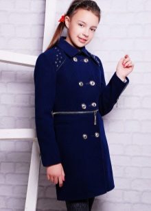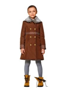 - ?If your child attends school with a strict form, then you can look at the classic version, so to speak, “on the way out”. The models are distinguished by an A-shaped or straight cut, as a rule, buttons act as a clasp, and a high collar excludes a hood. Such coats can be discreet shades - gray, blue, dark green, it is possible to print in the form of a cage or "goose foot".