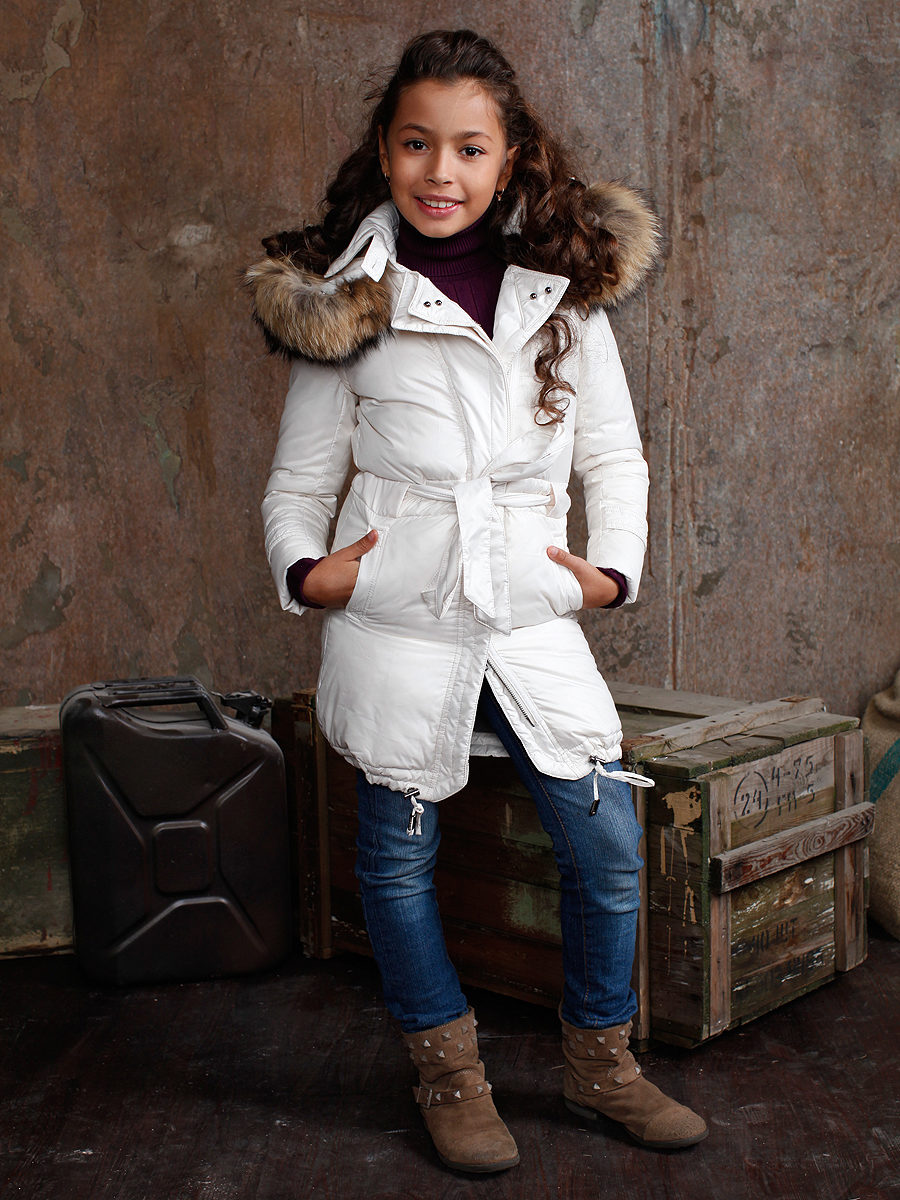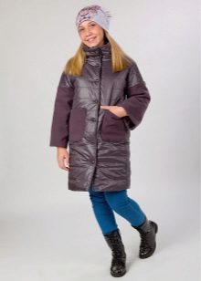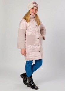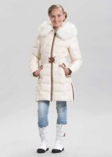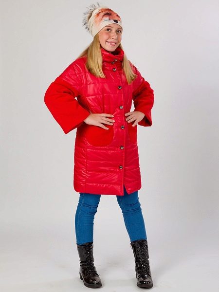 - Coats in casual style have incorporated the advantages of both models listed above. They can be worn with a classic school uniform, and with sportswear or casual wear - jeans and sweatshirts. These models have a straight cut, as well as more “adult” O-shaped, inflated silhouettes or an hourglass silhouette. Such options can be made of any fabric and combined with fur, knitted or leather inserts.