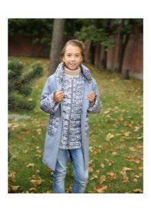 - Active teens will love the sport coats - variations of elongated jackets, well covering the back, with a hood, plenty of pockets and a zipper or Velcro. Designers offer a lot of colors for such clothes - from non-dirty and practical black or “khaki” to sky-blue or ashen-pink for girls. You can also consider options for more complex colors - mustard, ocher or chocolate.