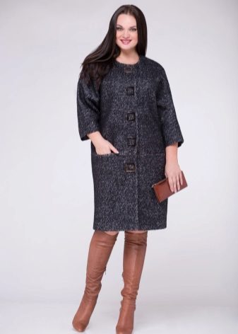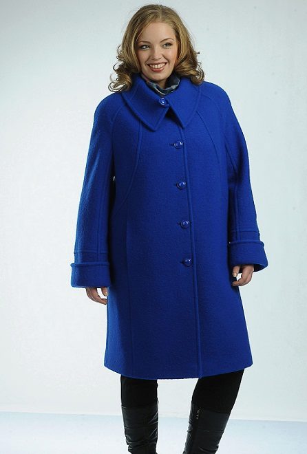 - Straight cut. The classic straight coat is perfect for large ladies, but its length should be moderate in this case - variations from mid-thigh to upper calves are allowed. Maxi length models are best not to choose.