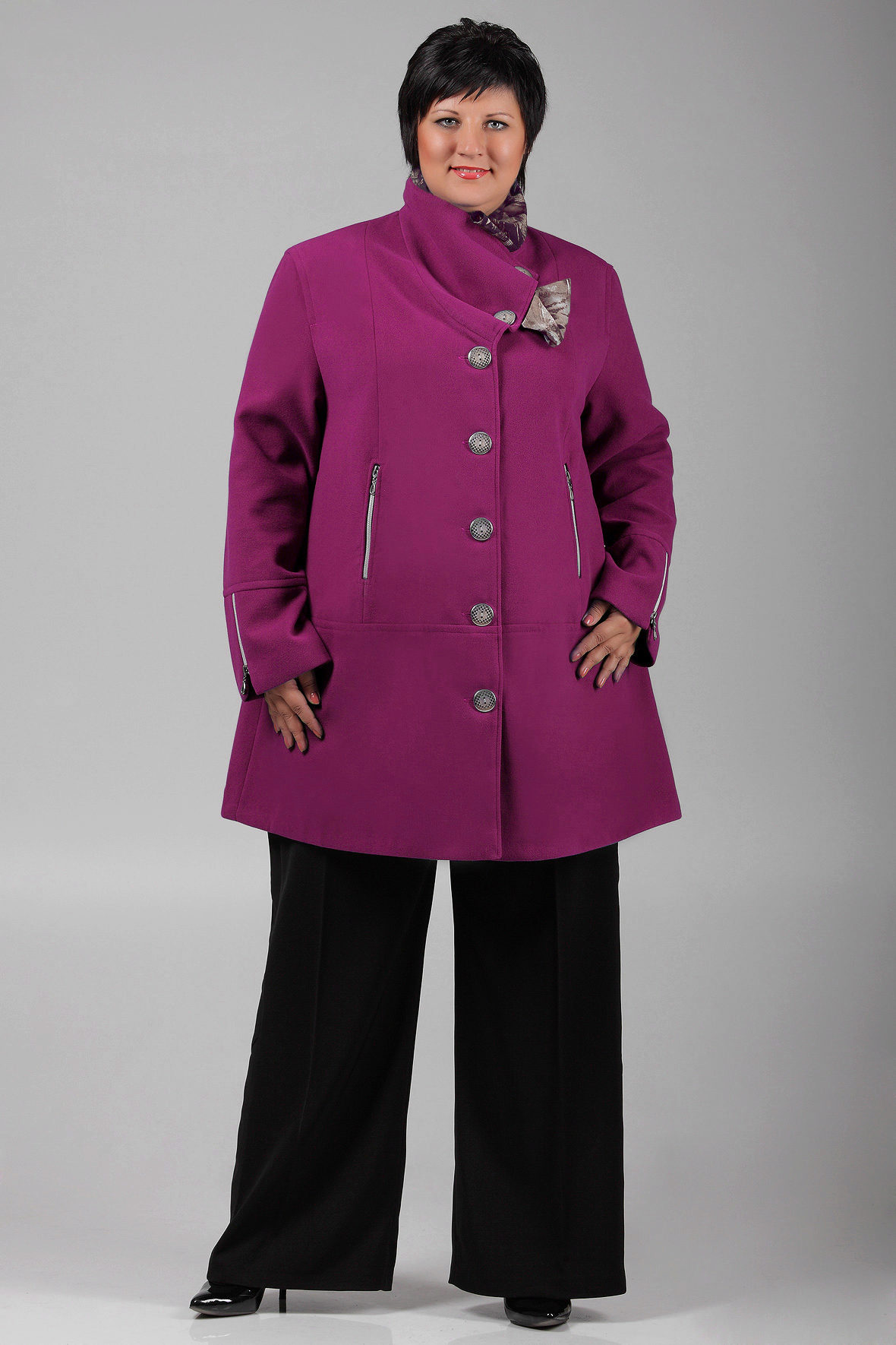 - Coat-jackets. These short coats are something between a classic coat and a modern jacket. Women of large dimensions should not choose the shortest options, and those that cover at least the buttocks.
