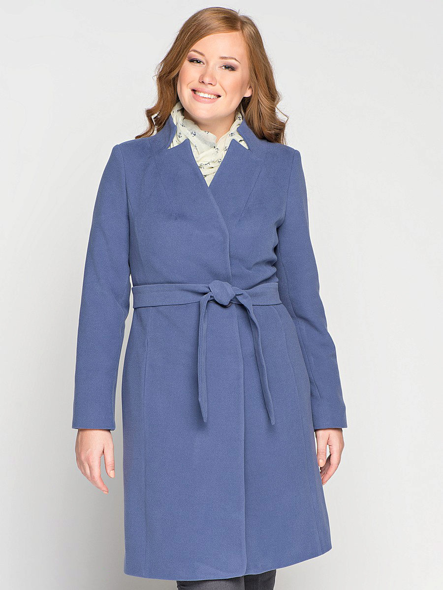 - Coat with a smell. On women with luxurious shapes, it sits just gorgeous. The lack of visible buttons makes the vertical line of the junction immaculate, with the result that it draws the silhouette even better. If you choose a model with a stitching in a contrasting color, you can visually increase the height and narrow the waist.